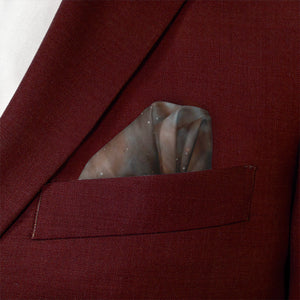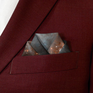 We print all our pocket squares on a recycled twill fabric made from plastic bottles that we have milled specifically for our products. We print our pocket squares on a single side and finish the edges with a fine purl edge. The back side of the pocket square will be unprinted.