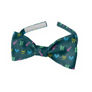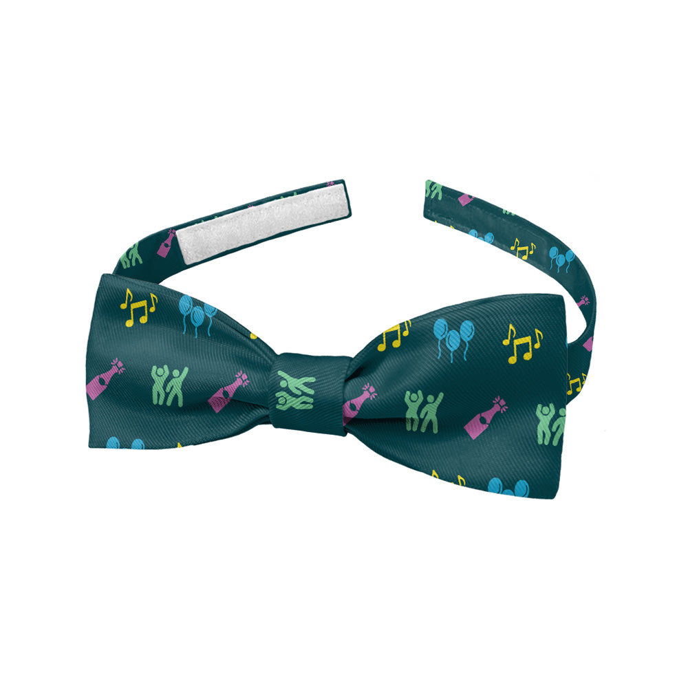 It's party time! This party tie features balloons, musical notes, champagne bottles, and dancing friends. The fun and modern Partying with Friends bow tie is perfect for your next night out.