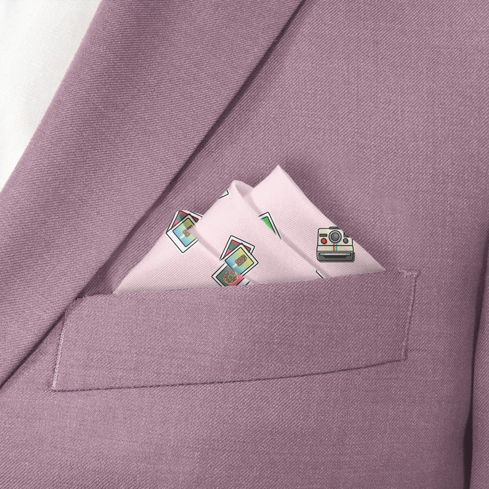 The Polaroid Pictures Pocket Square presents a unique design influenced by classic instant photography, combining nostalgic elements with modern flair. Meticulously crafted, this accessory brings a stylish and memorable touch to any outfit, perfect for those who admire vintage-inspired fashion with a contemporary edge.
