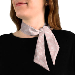 We use a high quality recycled polyester stretch poplin containing 86% recycled polyester, 14% spandex. Our hair scarves have a double-sided design with tapered ends.