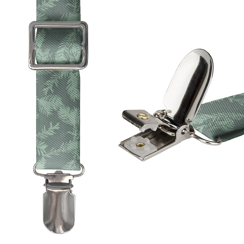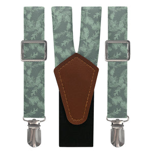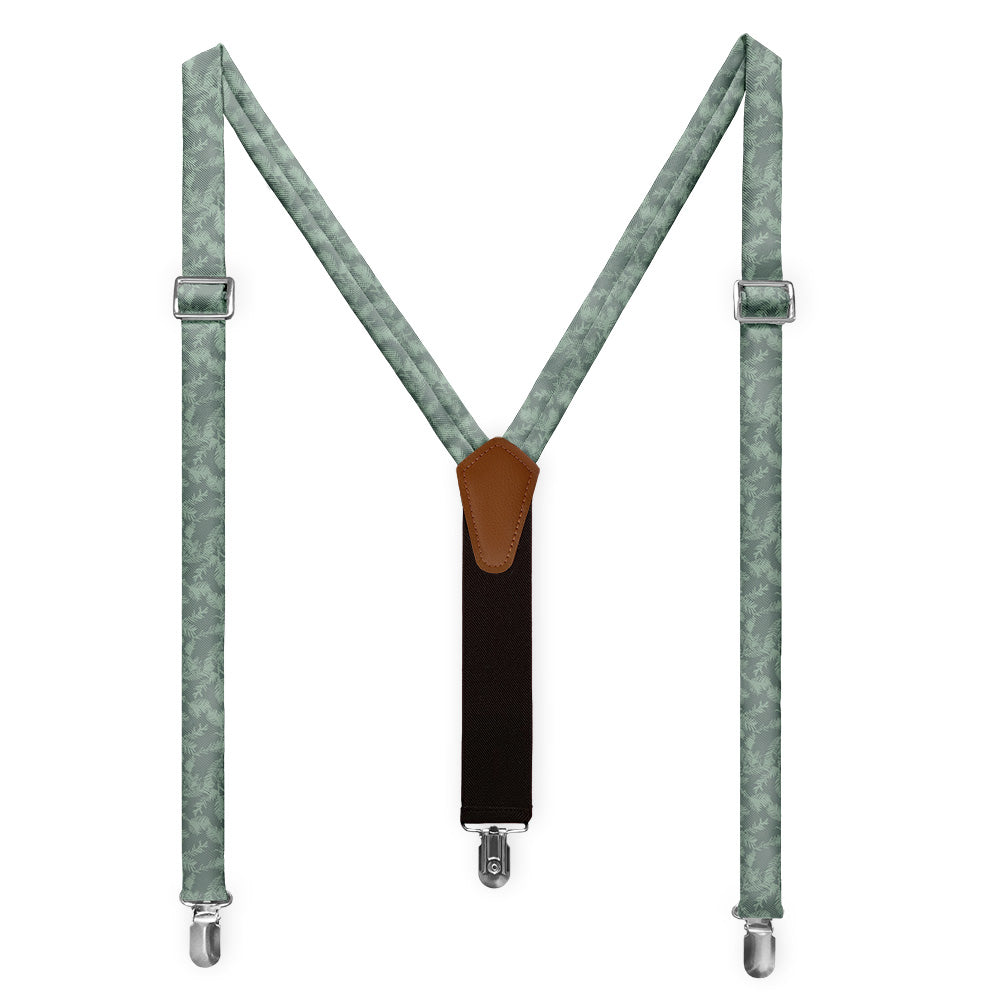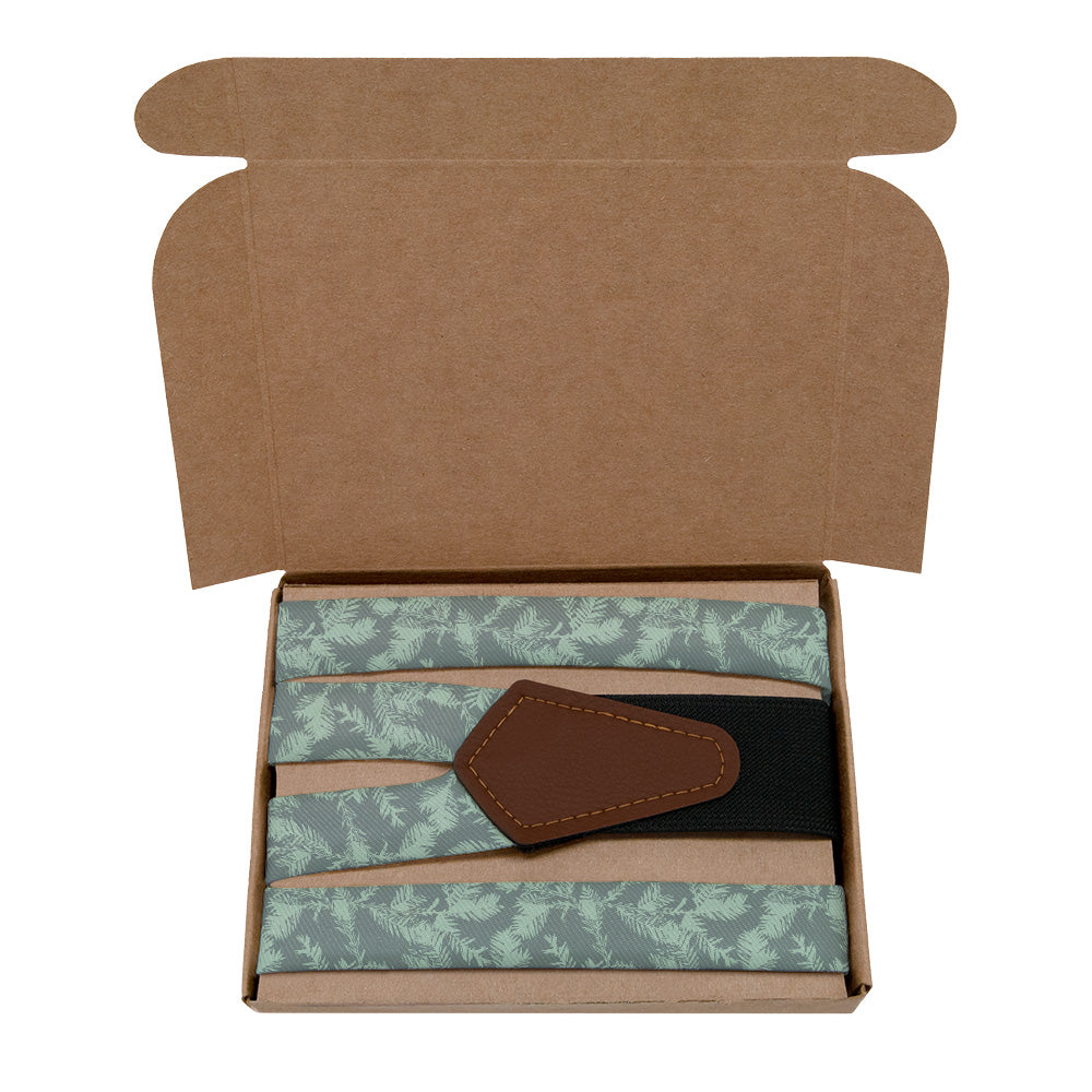 Go forest bathing any time with the Redwood necktie. Scattered redwood boughs give these forest suspenders a sense of peace and serenity. The forest green shade makes looks fantastic against a white shirt, or customize the design in your colors to match any outfit.