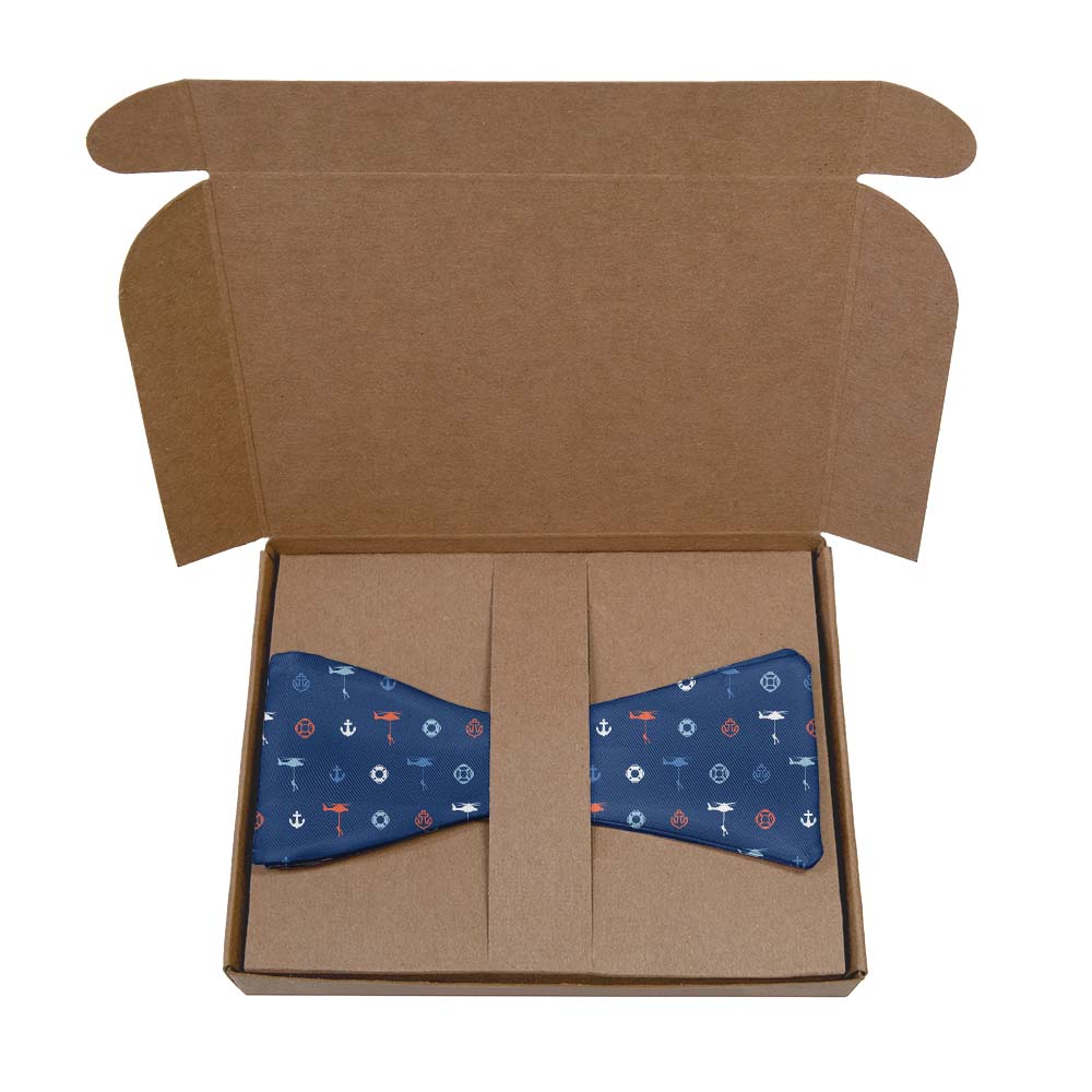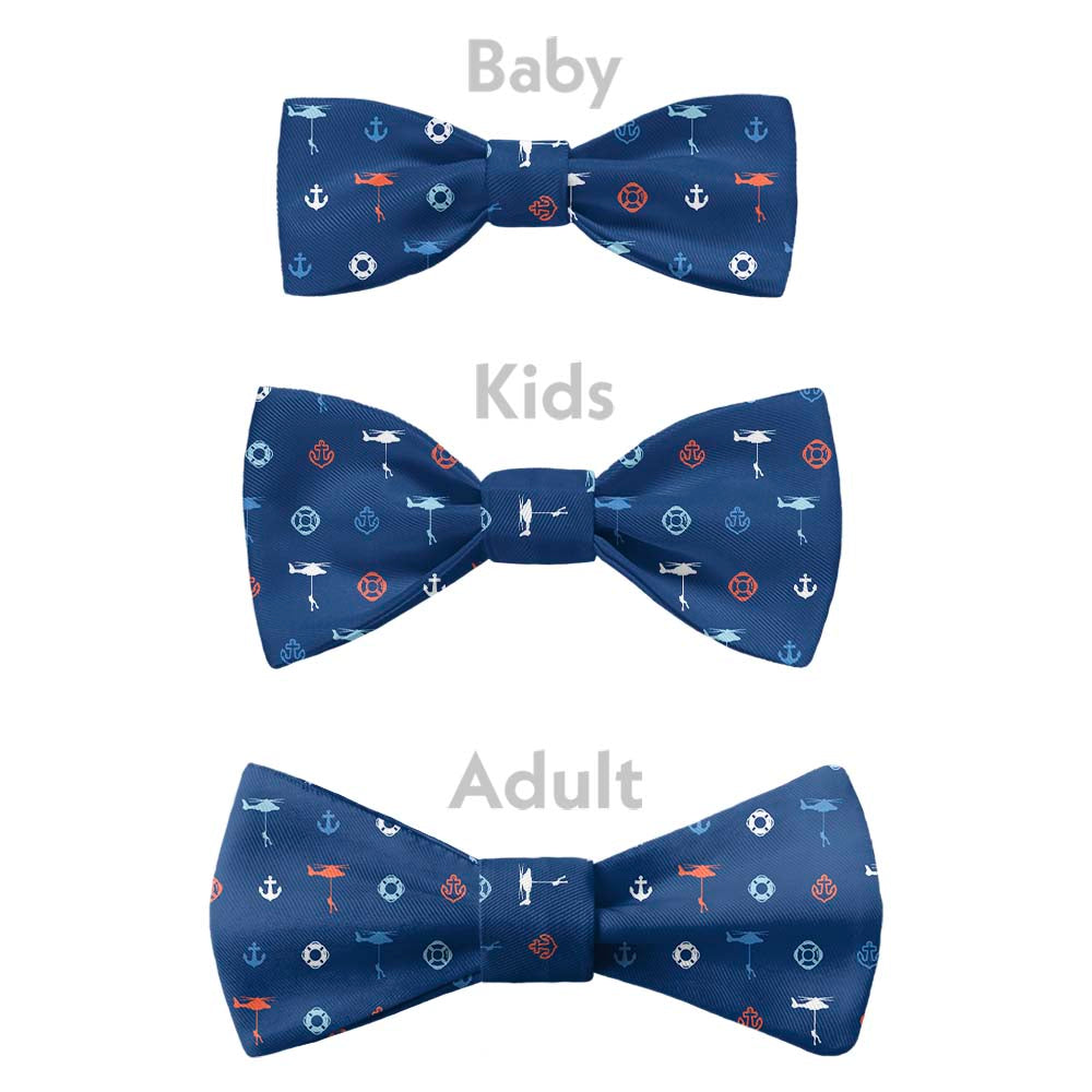 A micro pattern of anchors, life buoys, and divers dangling from rescue helicopters gives the Rescue Diver bow tie a fresh, modern feel. This military bow tie makes a great gift for divers from any branch.