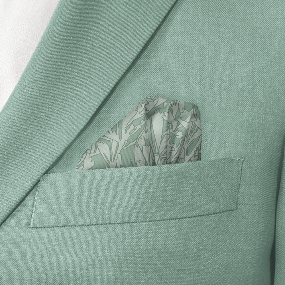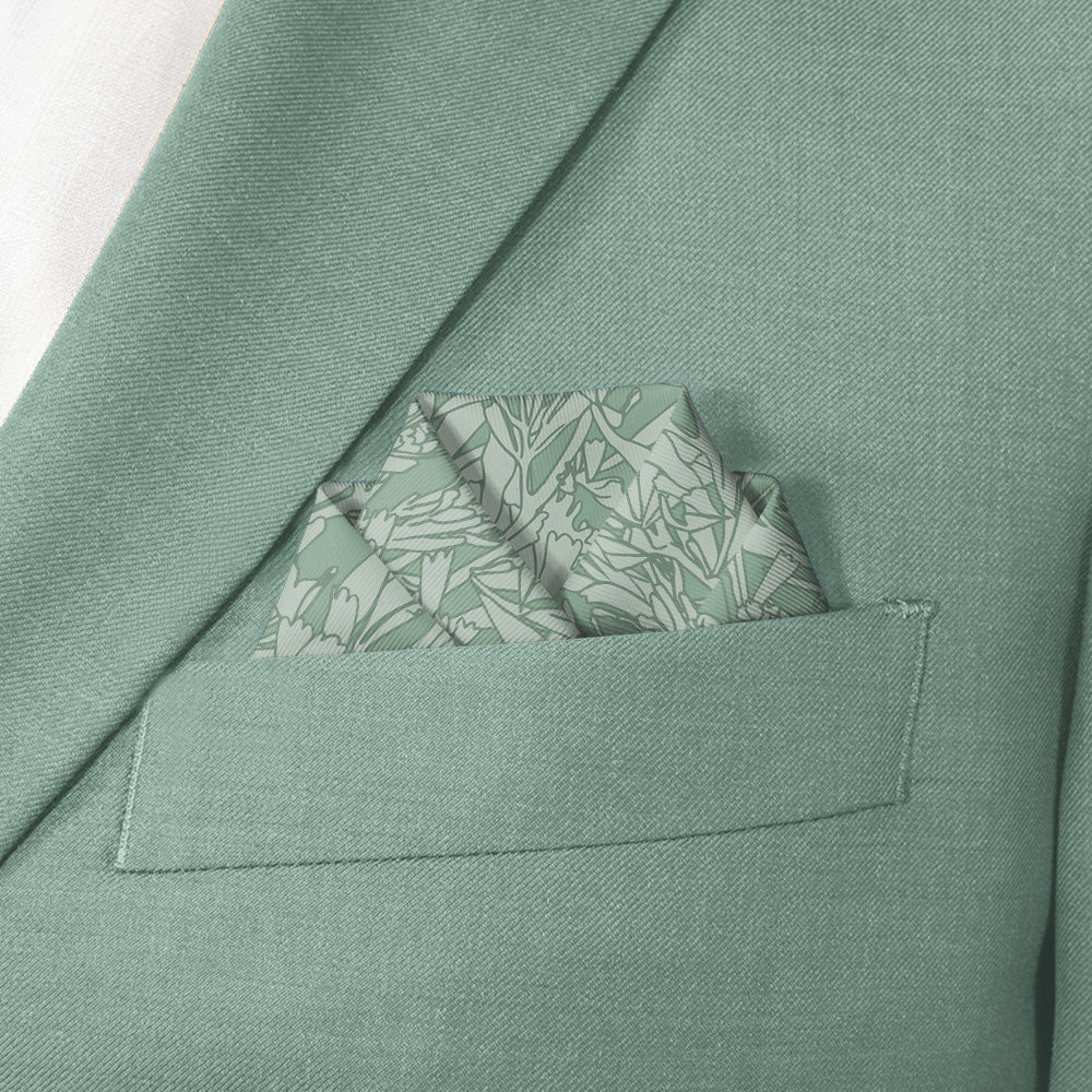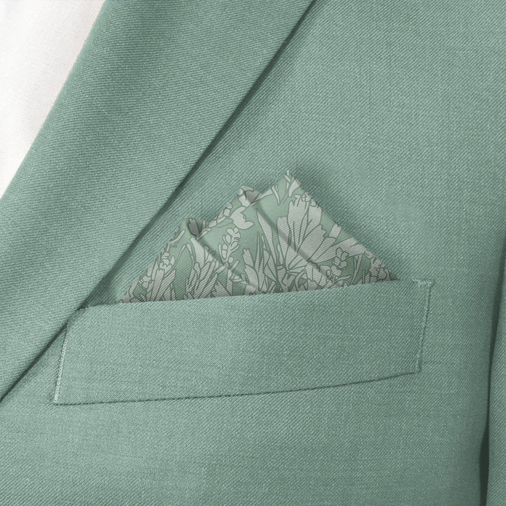 This unexpected twist on a floral pocket square features medicinal sagebrush in place of flowers. Clusters of sagebrush leaves and blossoms dance across the muted background. The Sagebrush pocket square is perfect for boho attire.