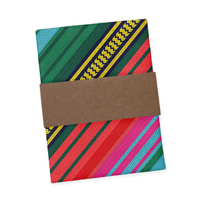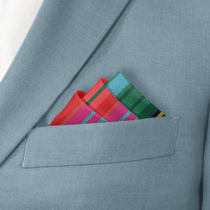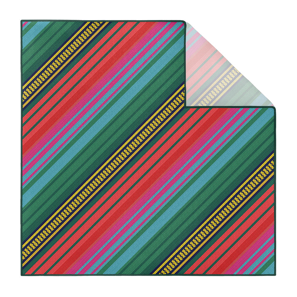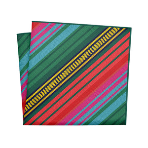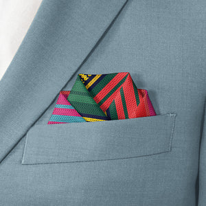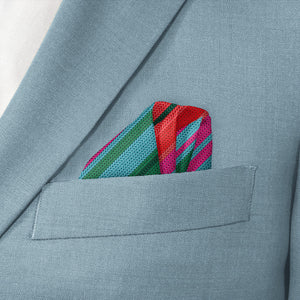 Inspired by the beauty of Mexican Saltillo blankets, this colorful, striped pocket square is perfect for bohemian or eclectic looks. The pattern on these vibrant stripes mimics a rustic, woven texture.