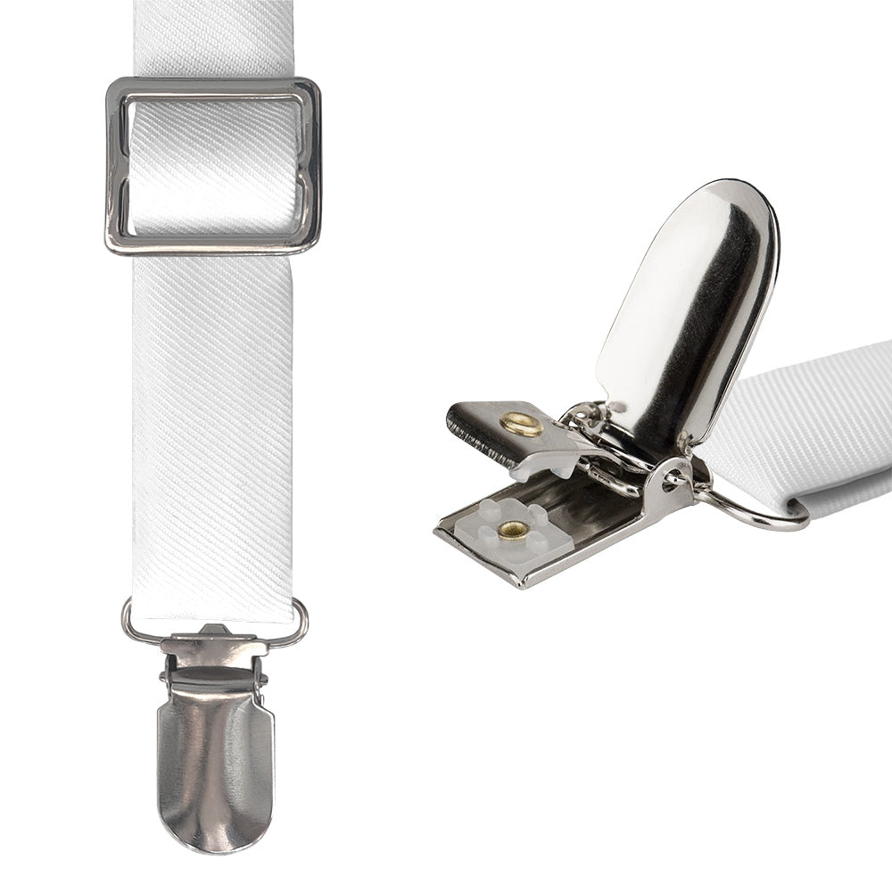 Solid white suspenders symbolize purity and perfection. The KT White suspenders provide unyielding elegance and sophistication.