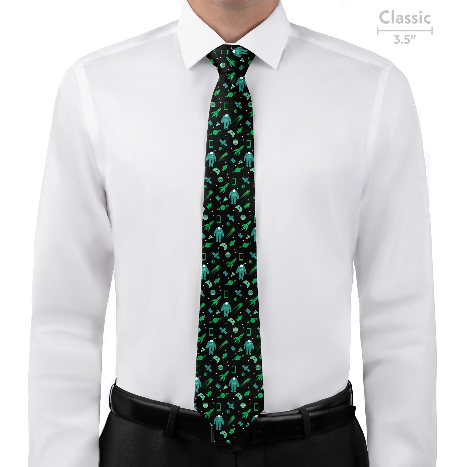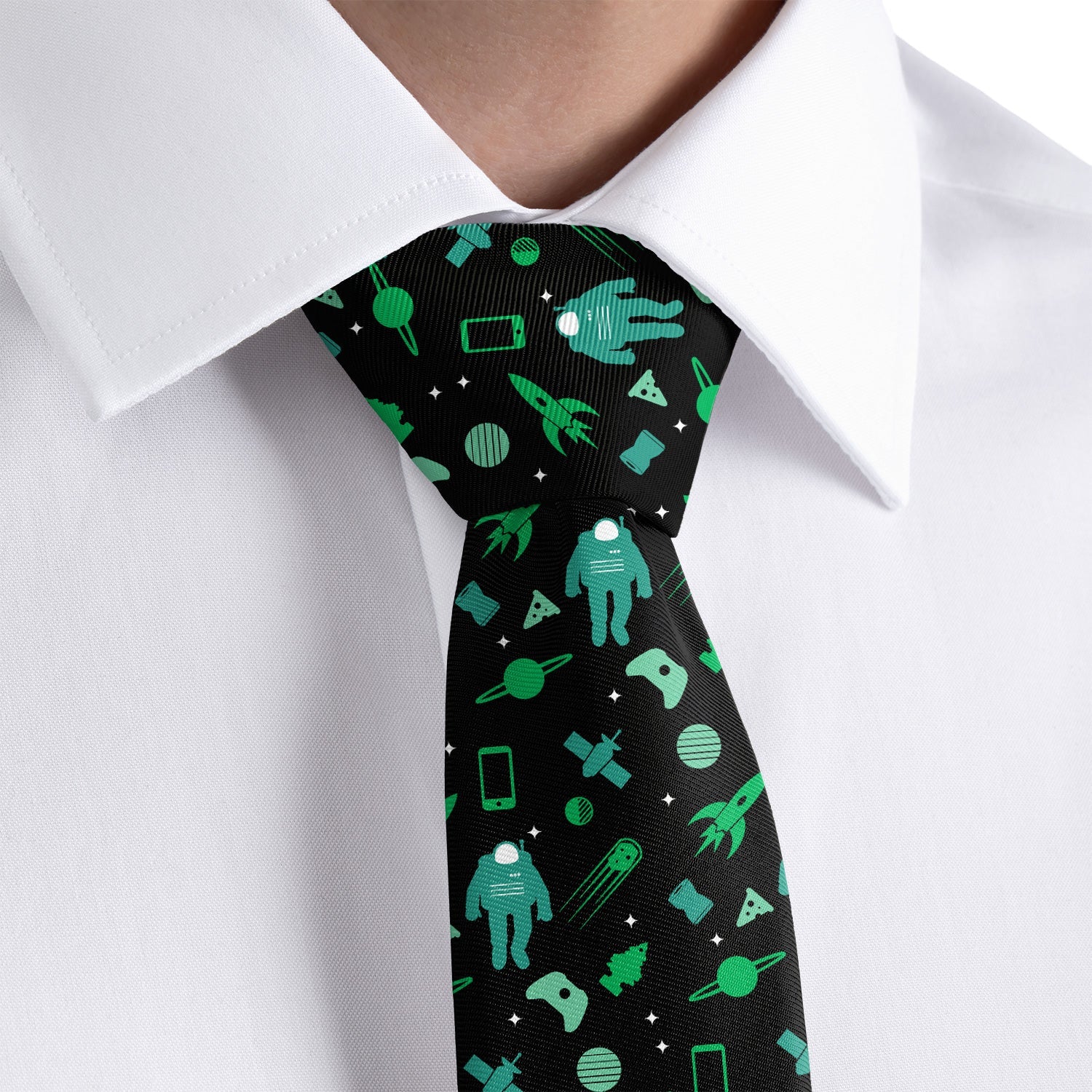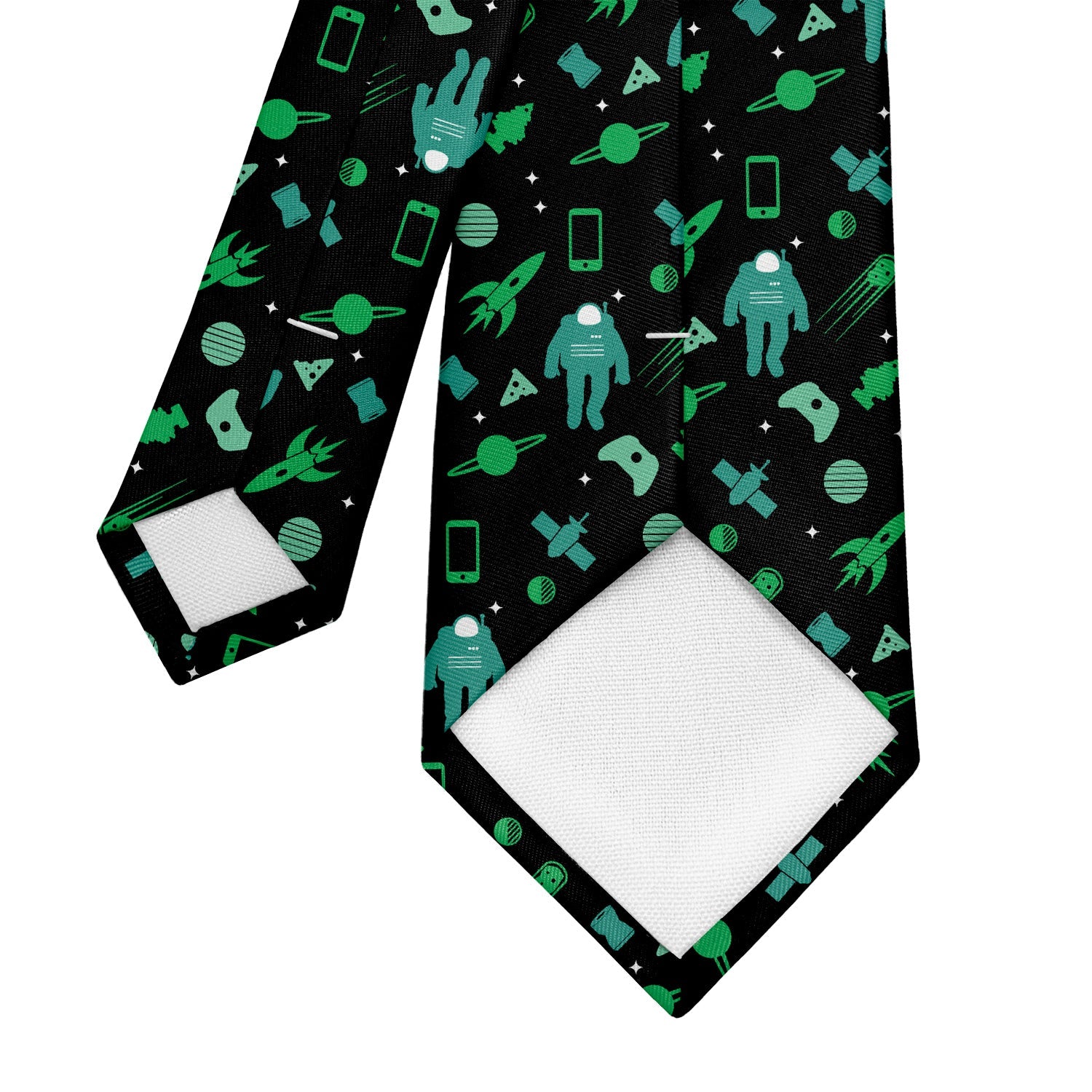 Launching garbage into space may seem like a good idea at first, but this tie shows the results. These astronauts have to dodge old phones, pizza slices, and even car air fresheners! We think recycling is a better idea. That's why we made this best selling space tie from recycled water bottles.