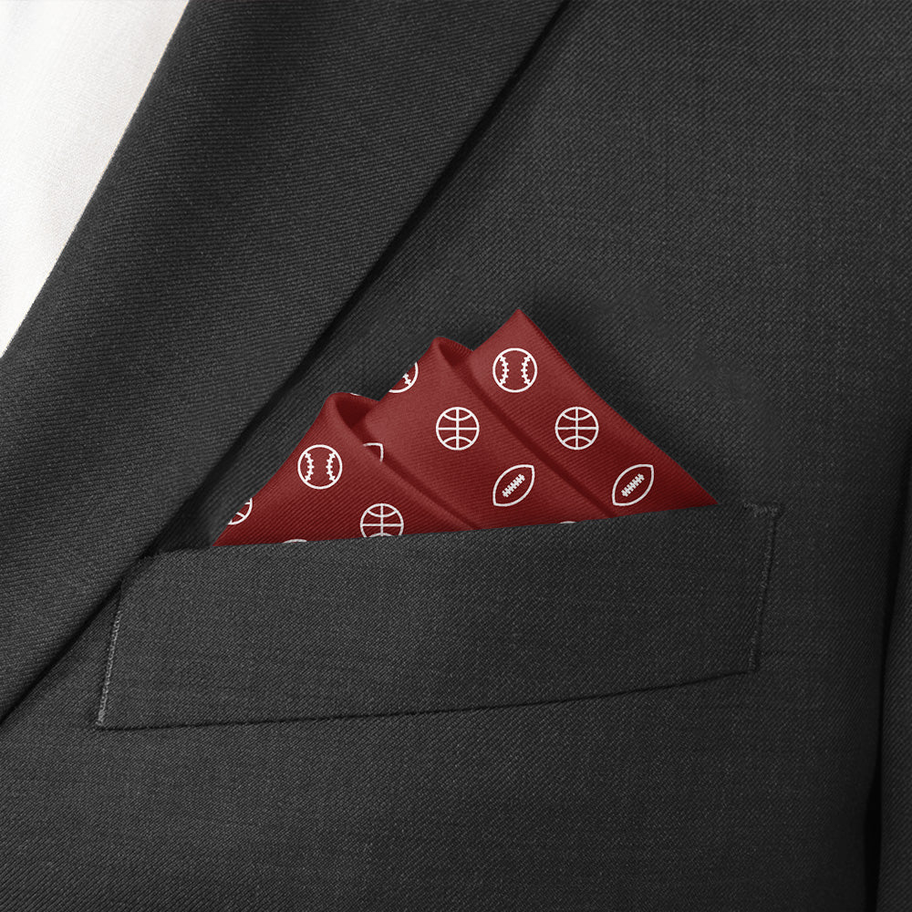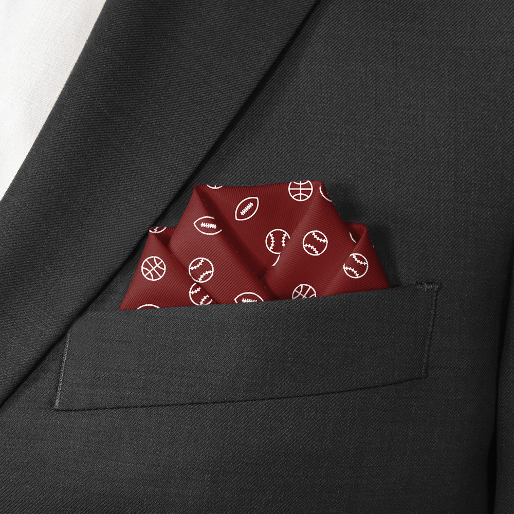 Who wants to play some sportsball? When you can't choose one sport, this sporty pocket square lets you wear them all. The modern, clean design dresses up or down easily. Customize the Sportsball pocket square in your school colors for a versatile sports tie that will work all year long.