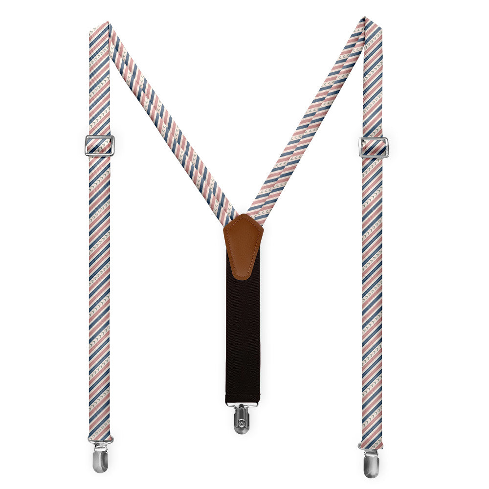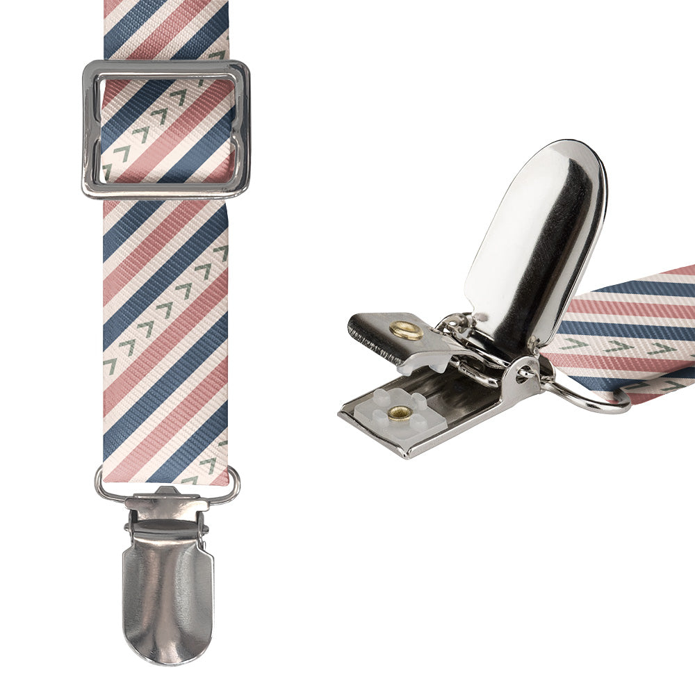 These multicolored Bengal style stripes are broken up with a row of arrows to add texture and interest. The Spring Stripe suspenders are perfect for wedding suspenders or more casual occasions.