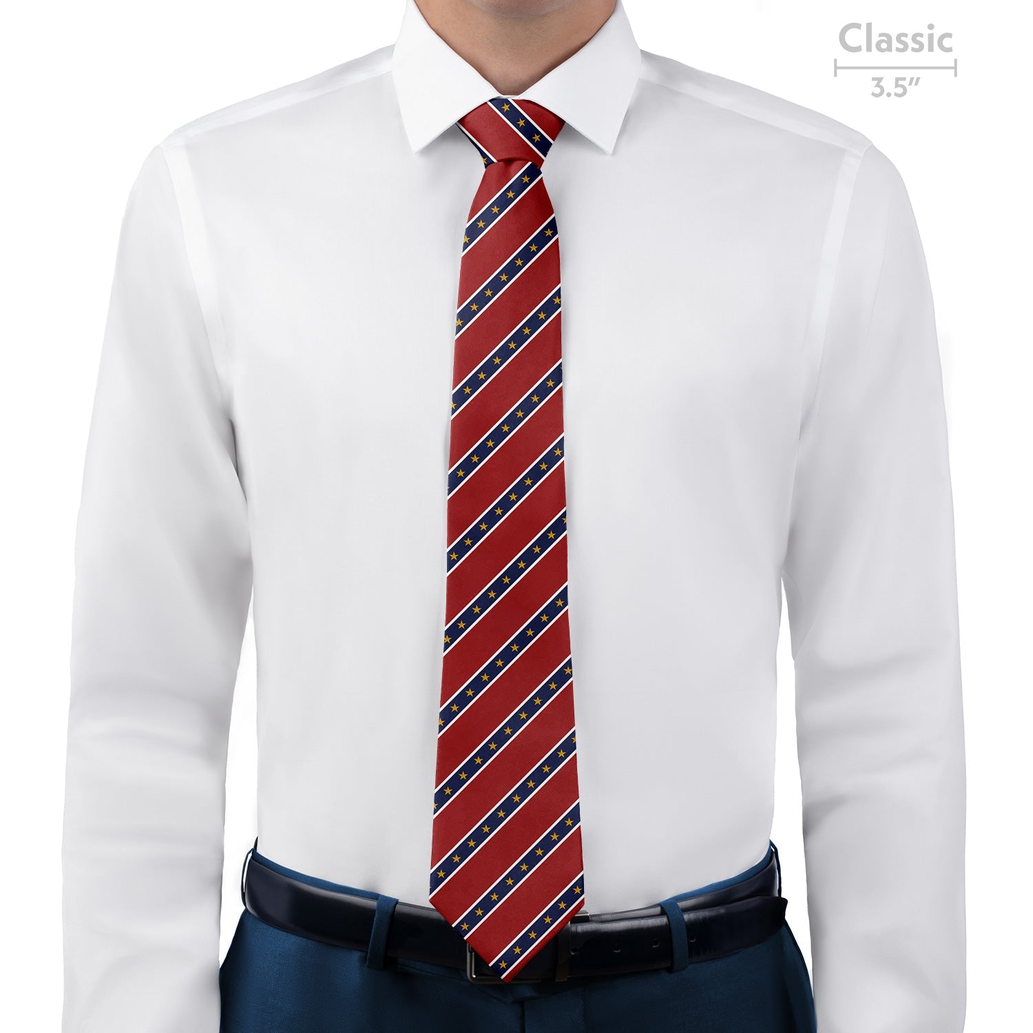 When you want to show your patriotism, look no further than the Stars and Stripes necktie. Varying stripe widths give this patriotic necktie a modern, dynamic feel.