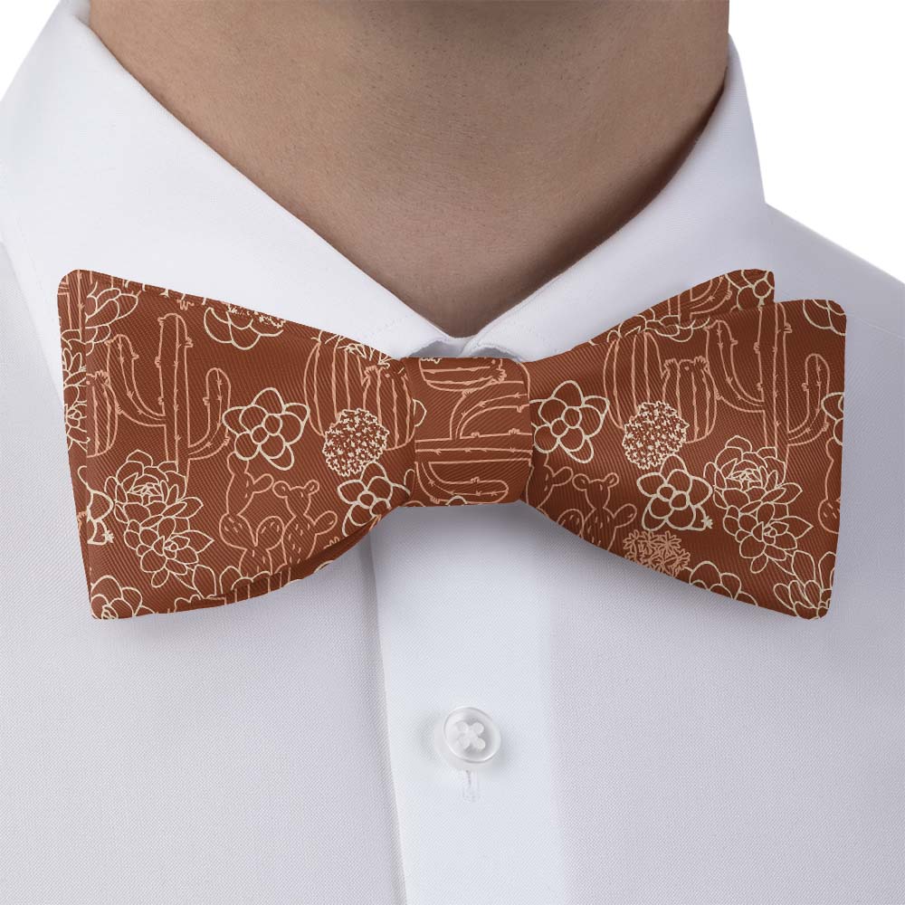Celebrate the stark beauty of a cactus garden with a bow tie as whimsical and unpretentious as nature's hardiest plants. Simple organic line drawings evoke a colorful arrangement of hen and chick succulents.