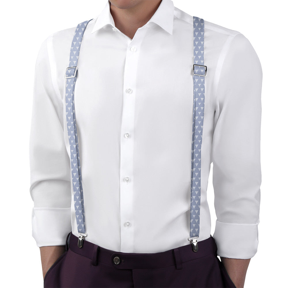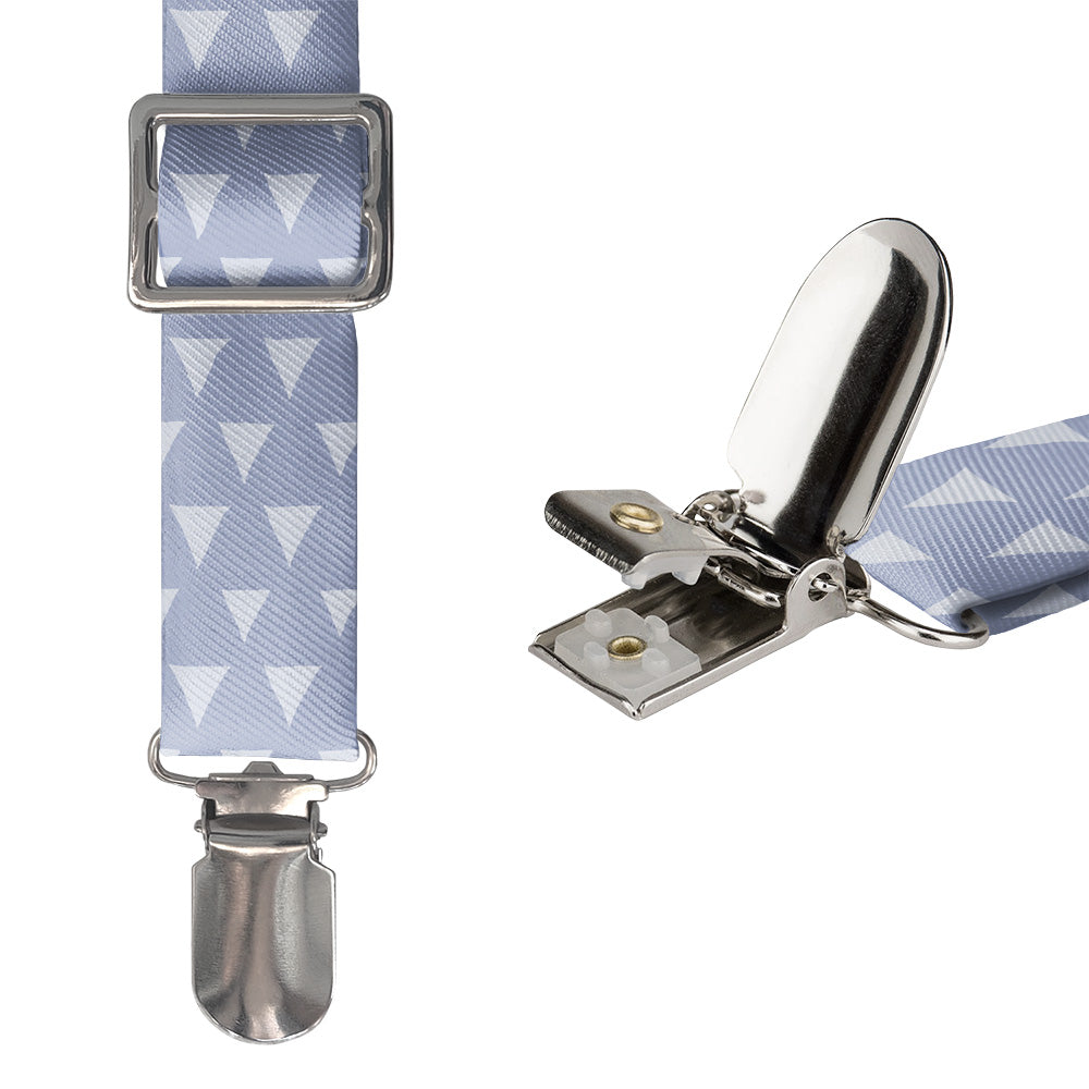 The slight irregularities in these hand-drawn triangles soften the geometric precision of the Tri Geo suspenders, giving them an approachable, dynamic energy. It's fantastic for work or casual wear, but equally good for more formal attire. The design is easy to customize in your own colors for weddings or other special occasions.