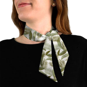 Leaves and ferns unfurl across the Tropical Leaves hair scarf. The fresh and simple botanical design is perfect for lounging beside a tropical pool or just spicing up a summer outfit.