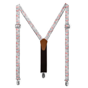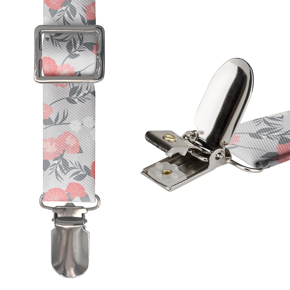 Printed fabric straps are 1-inch wide and secured to an elastic rear strap with vegan leather Y-back to allow the suspenders to move with you and extend as you bend. We use silver alligator pant clips that feature a special mechanism to ensure the suspenders clamp securely to pants.