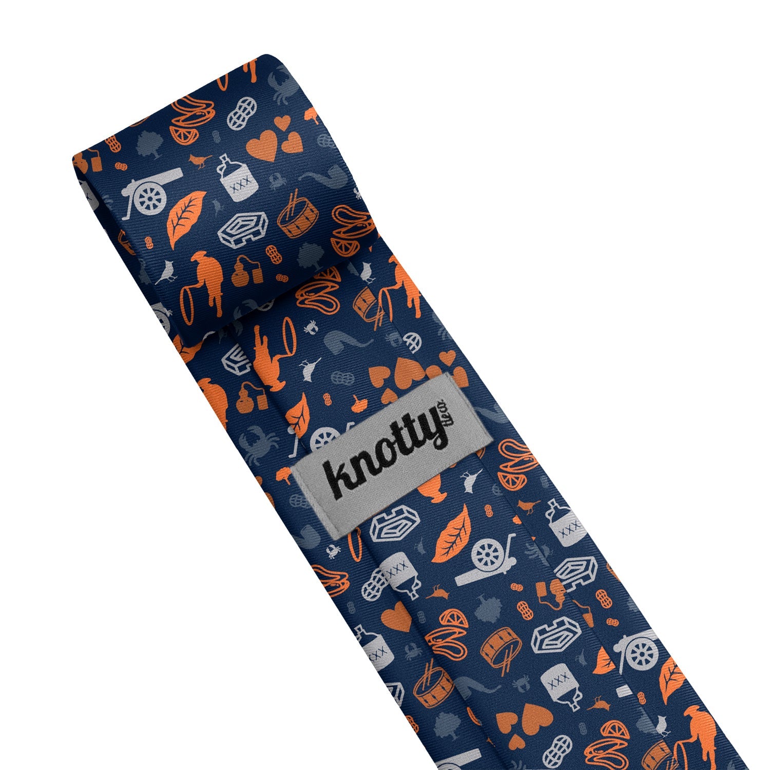 The Virginia State Heritage necktie celebrates the history, culture, and natural beauty of Old Dominion. This tie is pure Virginia, from Revolutionary War cannons, to moonshine, to crabs and oysters.