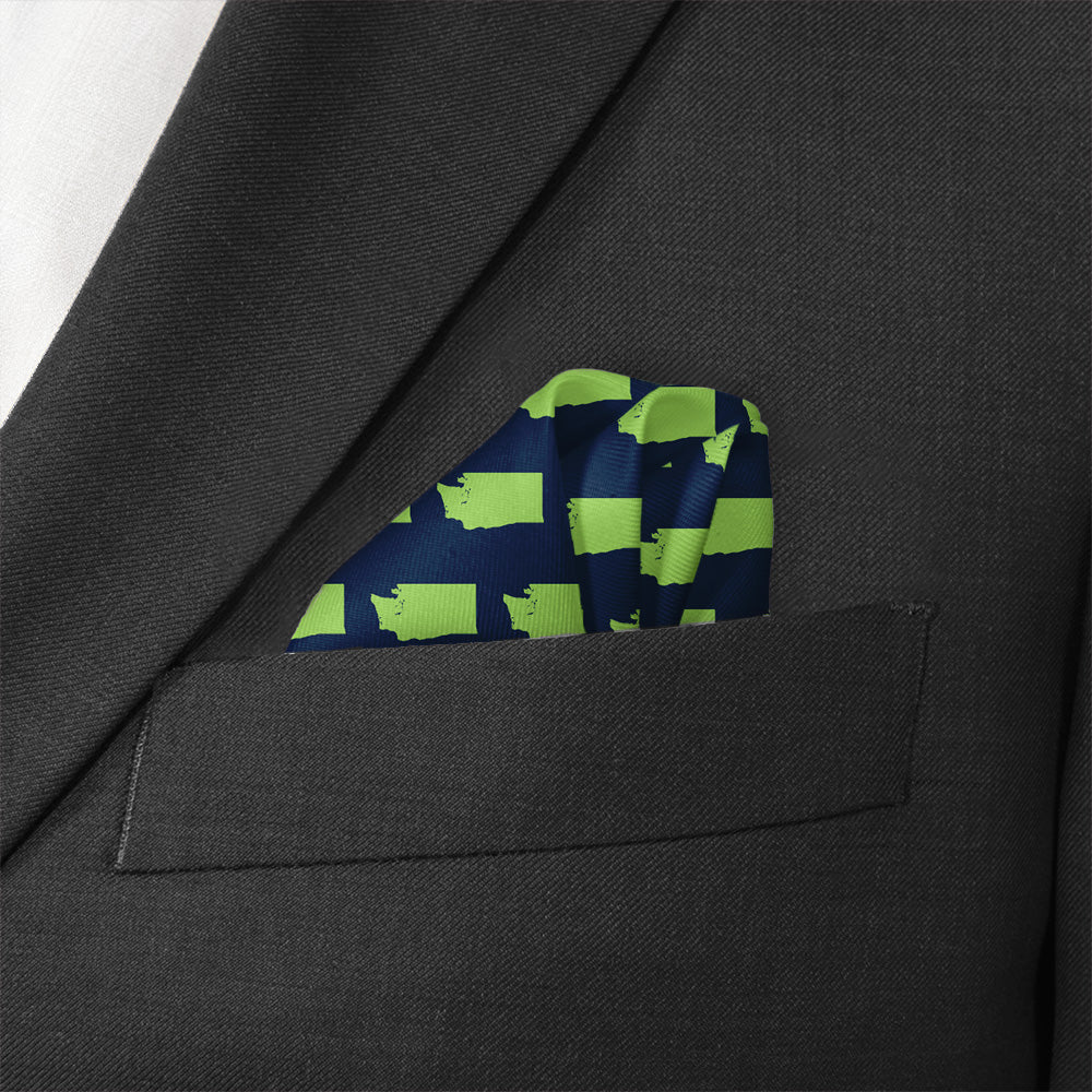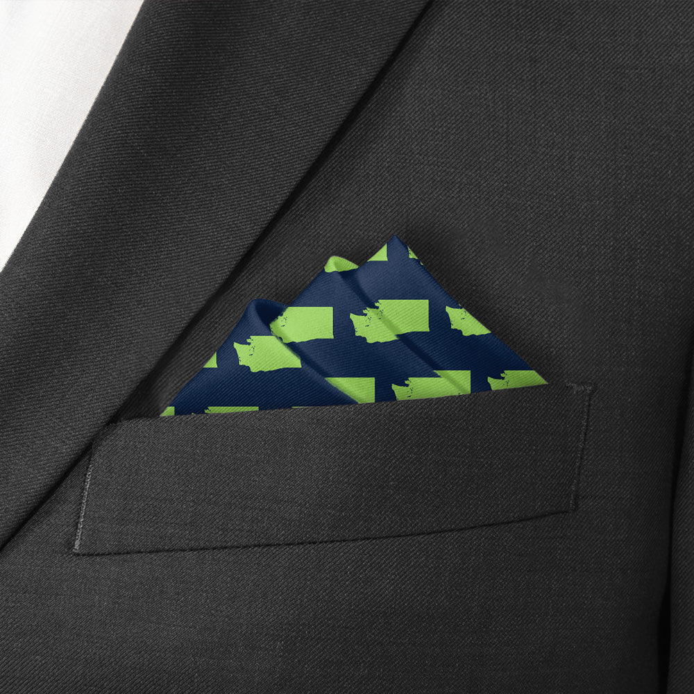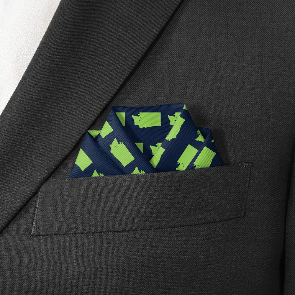 The customizable Washington State Outline pocket square features a repeating pattern of the Evergreen State. It's perfect for any proud Washingtonian.