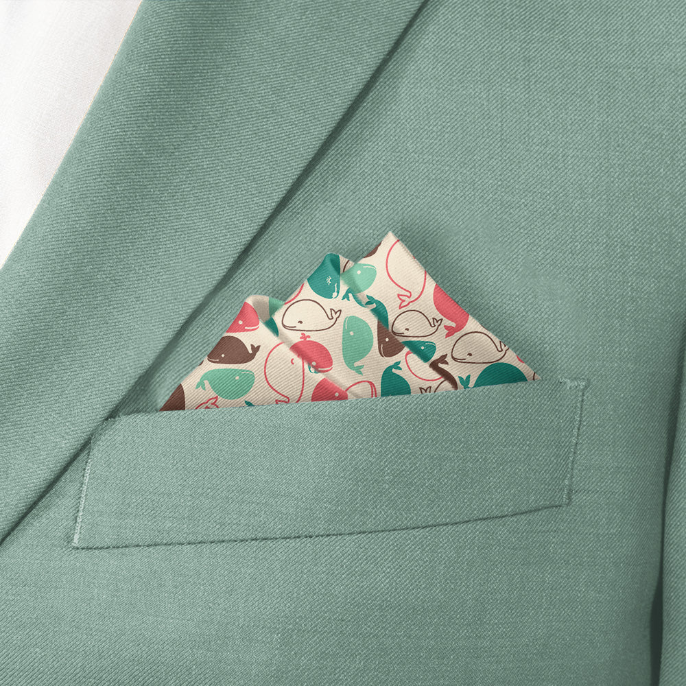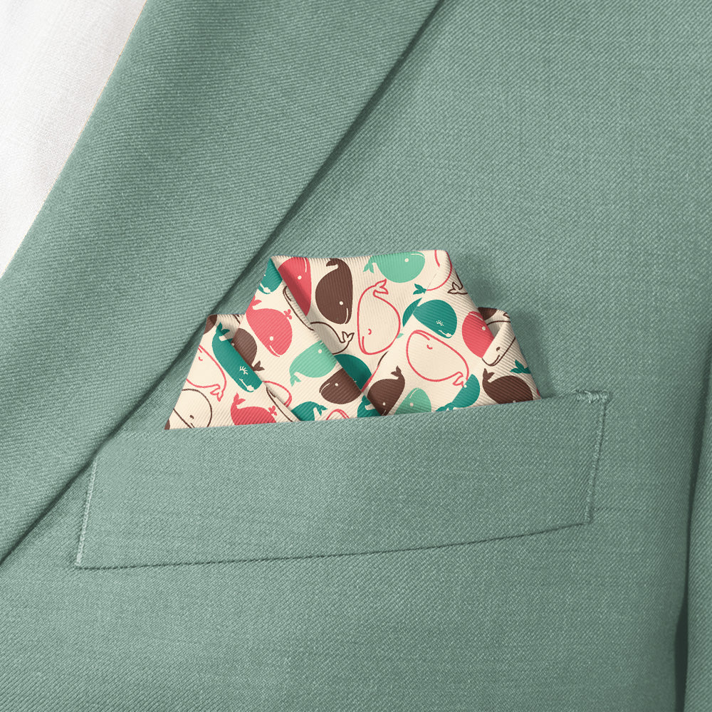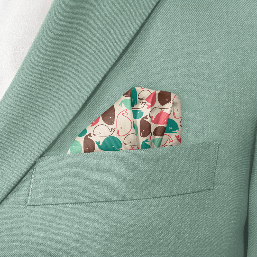 Whimsical whales in summery shades give this nautical pocket square a buoyant feeling. Wear the Whales pocket square to the office, out to drinks, or to a summer seaside wedding.
