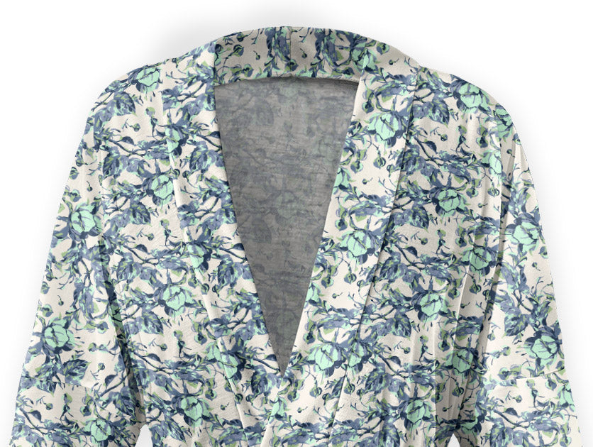 Painterly blossoms, leaves, and flower buds twine gracefully across the surface of these abstract floral robes. Inspired by shabby chic designs, these floral robes are customizable in the colors of your choice. A perfect choice for bachelorette parties or fun "getting ready" photos before your wedding.