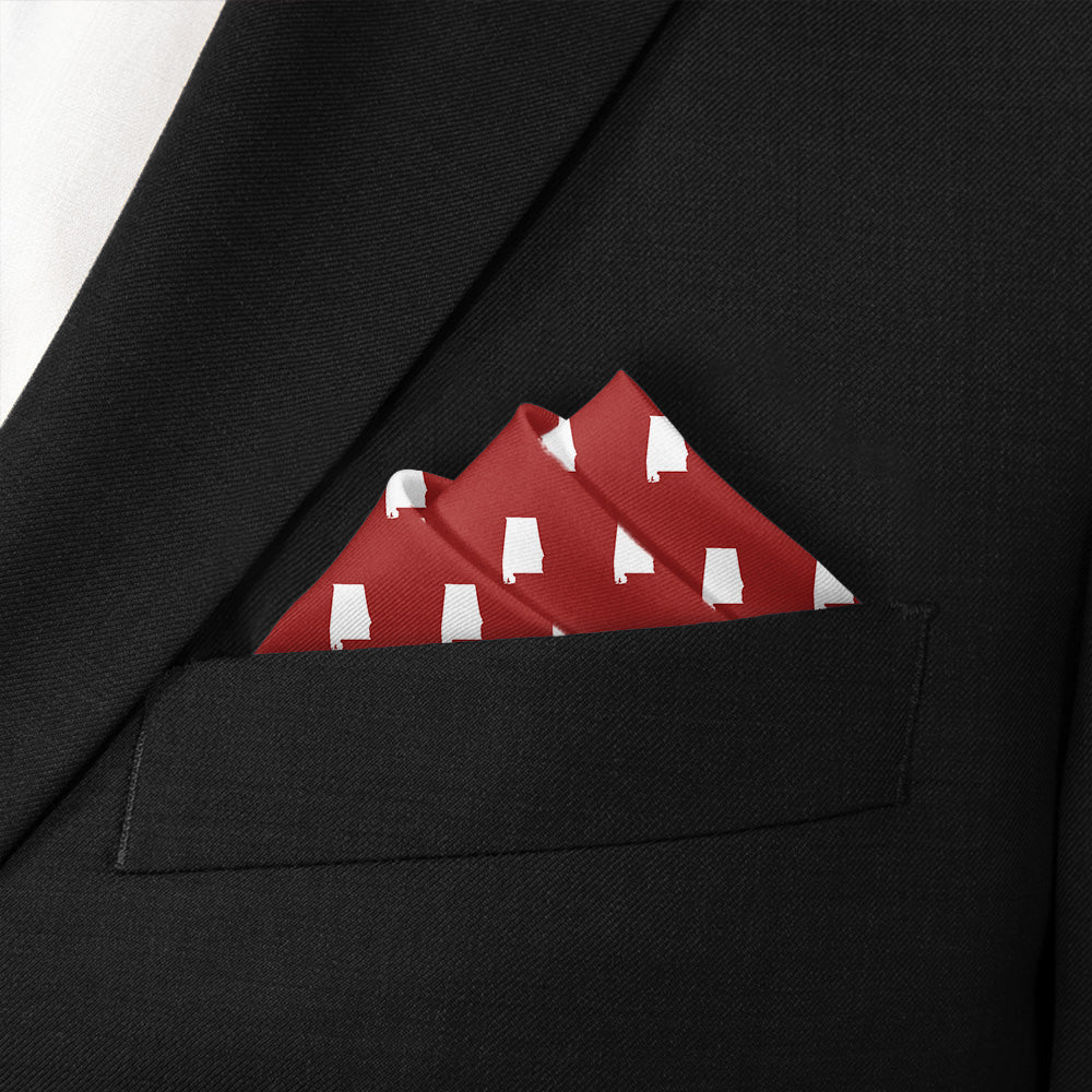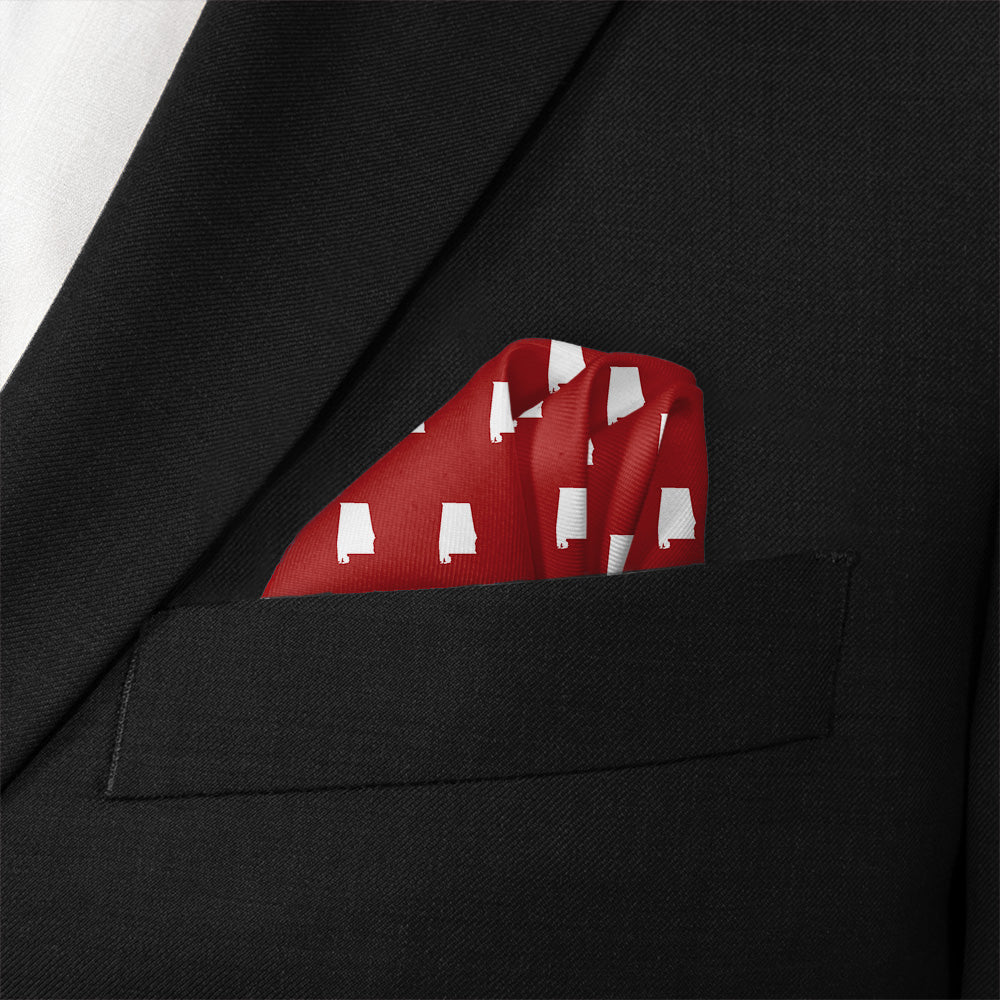 Honor your home state with the Alabama State Outline pocket square. A repeating motif of the Alabama state outline is the perfect way to show your love for the Yellowhammer State.