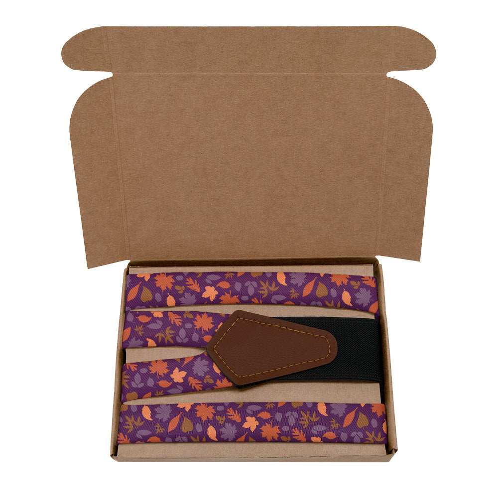 Celebrate autumn with these playful falling leaf print suspenders. The customizable Autumn Leaves suspenders are perfect for work, play, or fall weddings.