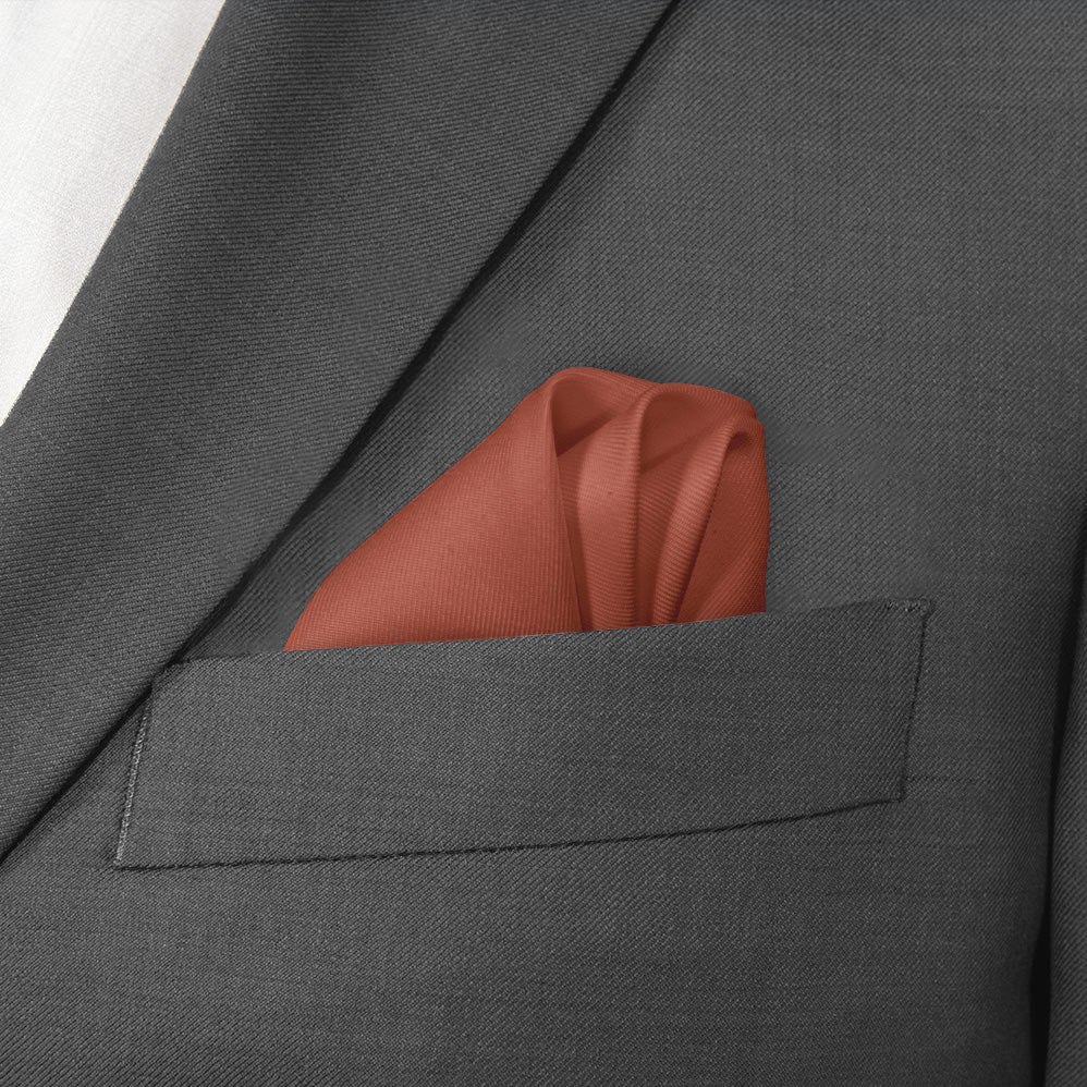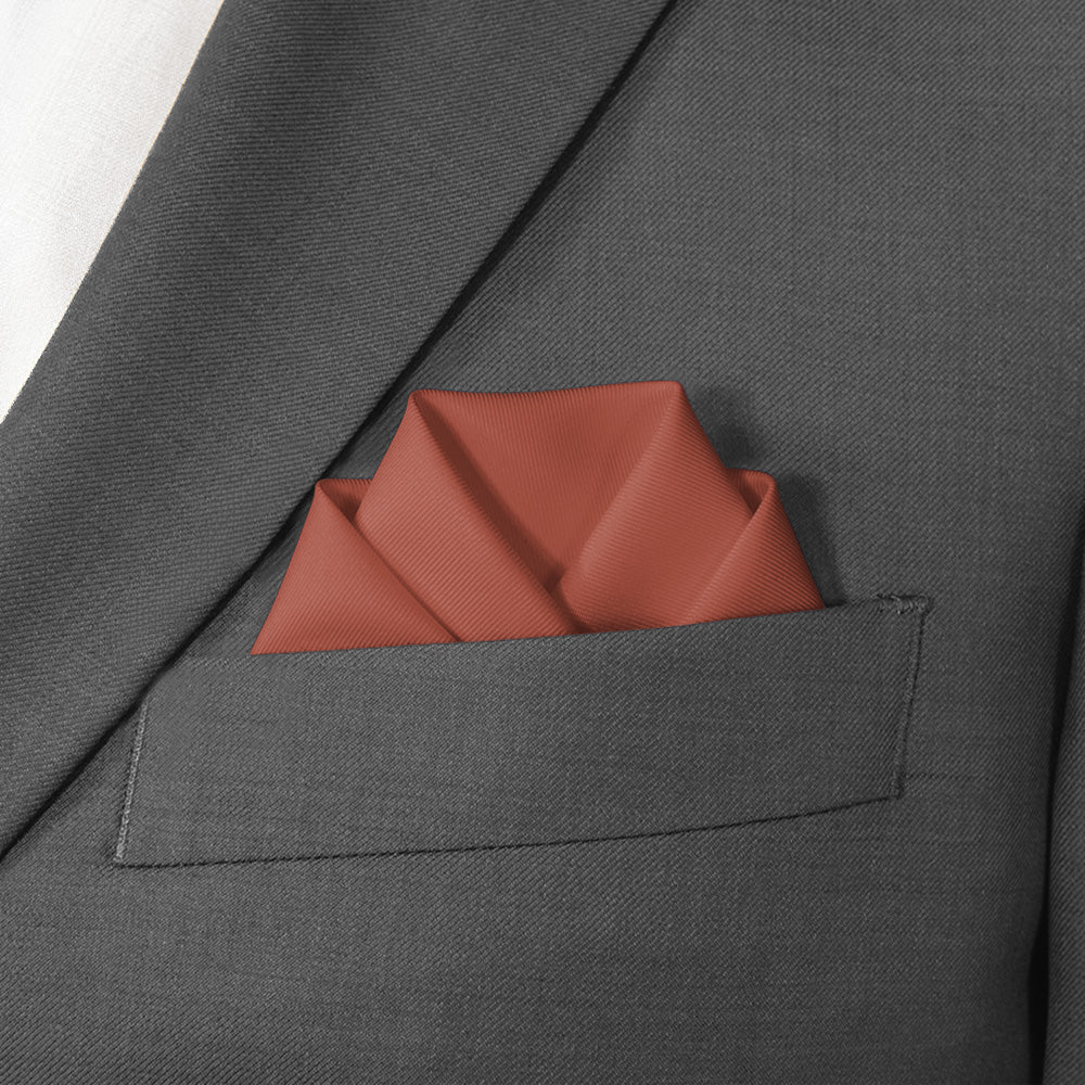 Warm, charismatic and inviting, this solid burnt orange wedding pocket square is a modern take on autumn inspired wedding fashion. Conveniently matched to Auburn from Azazie.