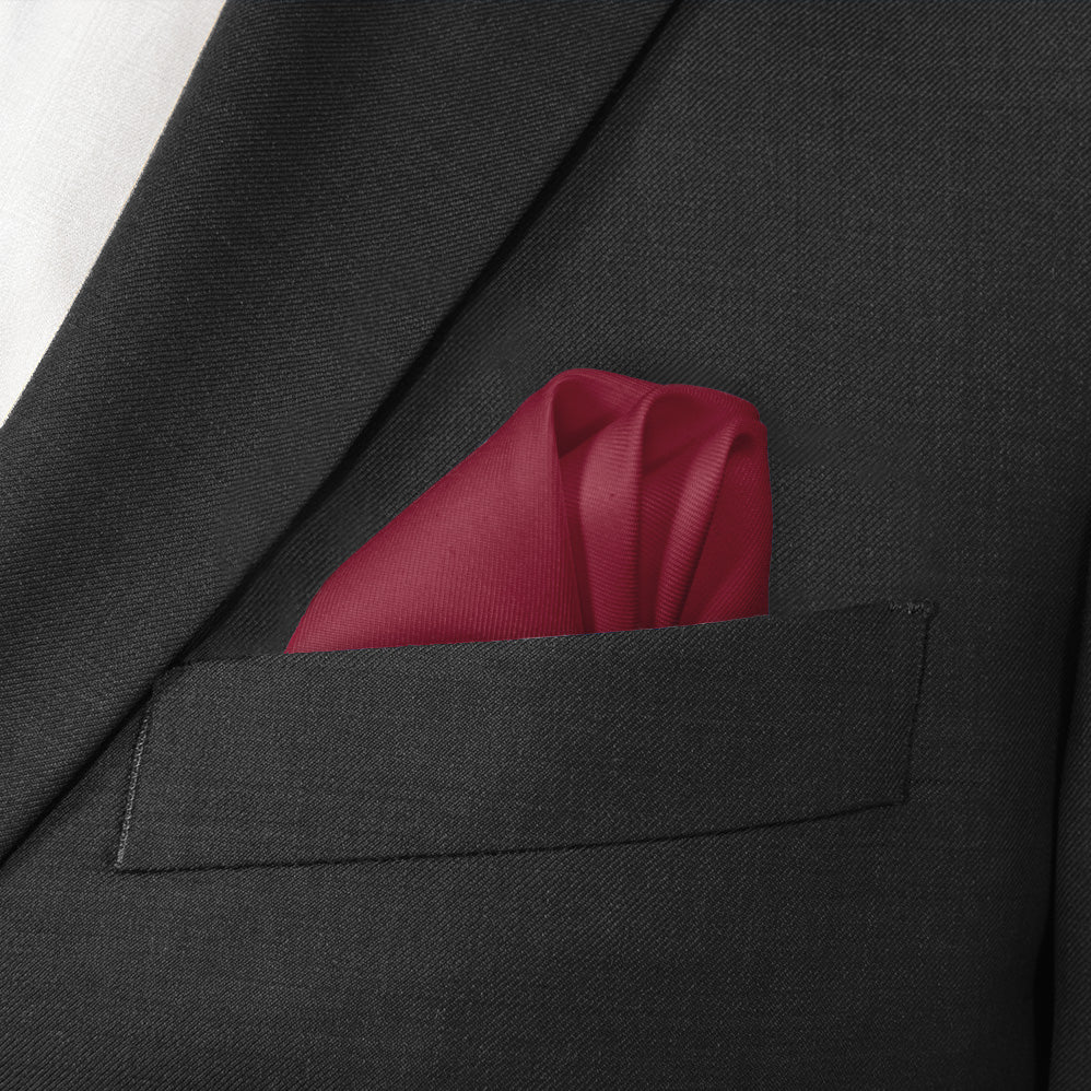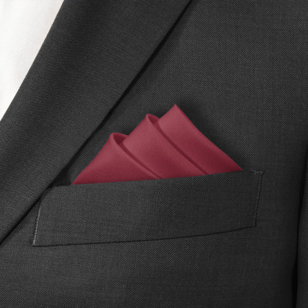 Matched to Azazie Burgundy, solid wedding pocket squares like these radiate elegance and sensuality.