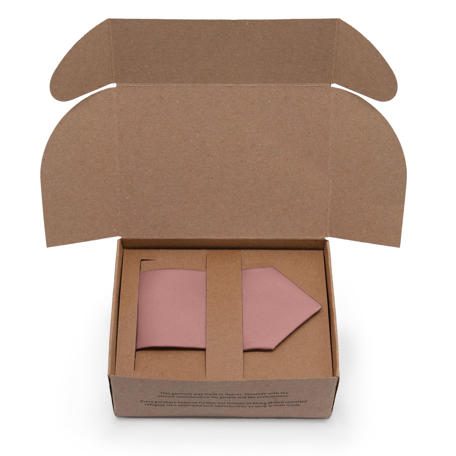 These solid rose colored wedding ties match Azazie Champagne Rose, a subtle pink symbolizing love, romance, and celebrations.