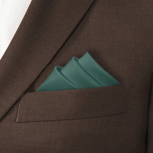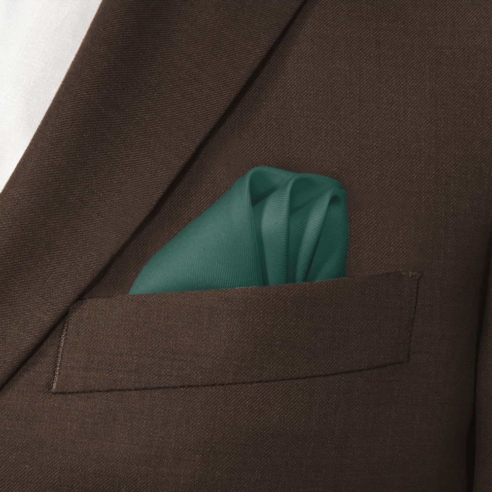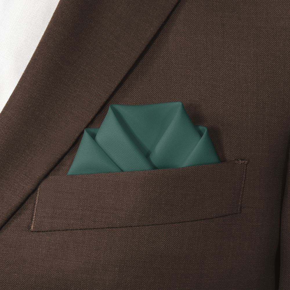 Our solid wedding pocket squares matched to Azazie Dark Green symbolize prosperity and harmony.