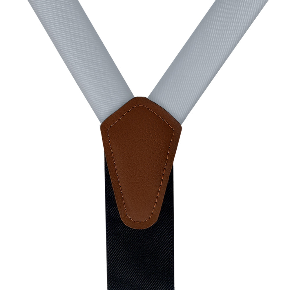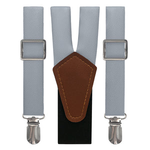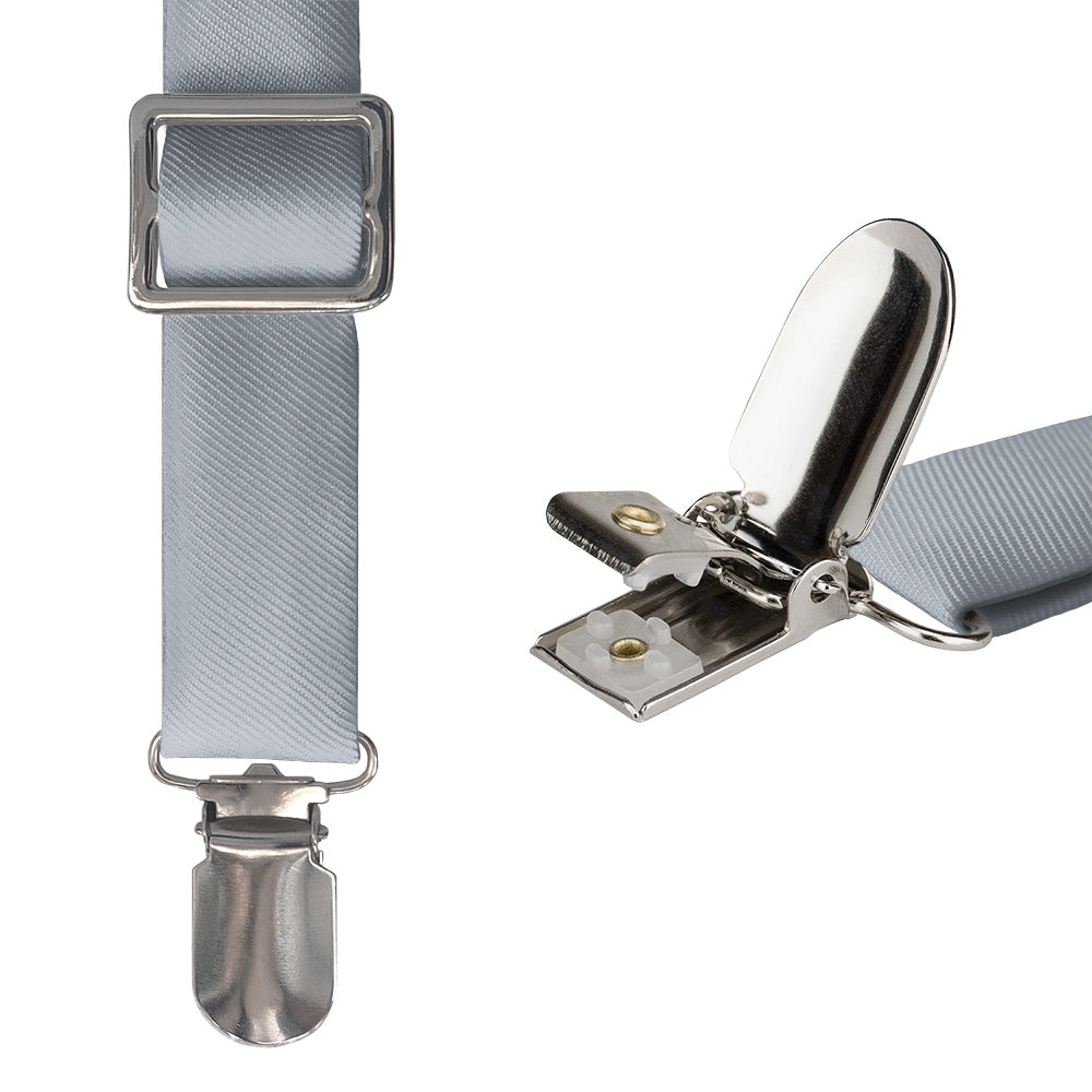 Pale gray suspenders convey peace and harmony. These solid gray wedding suspenders closely match Azazie Dolphin Grey.