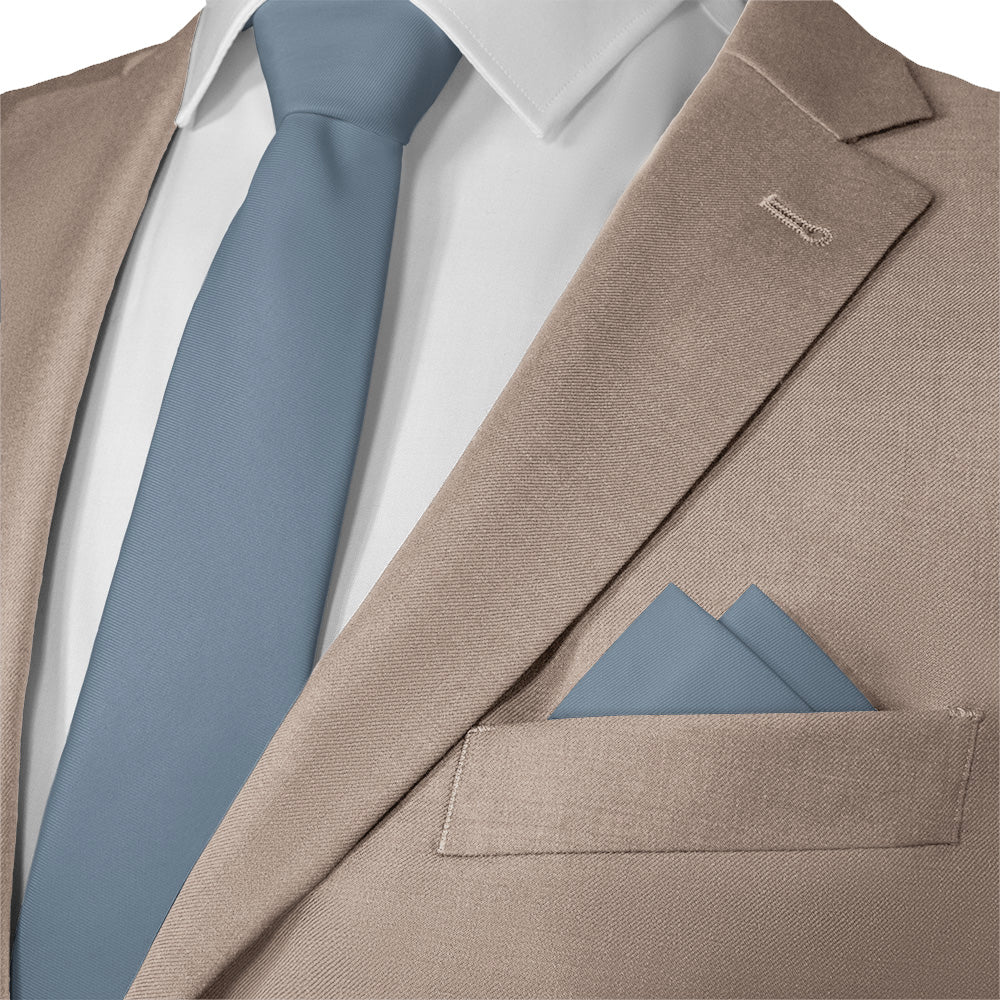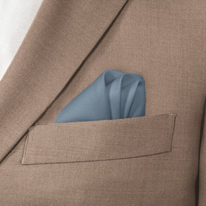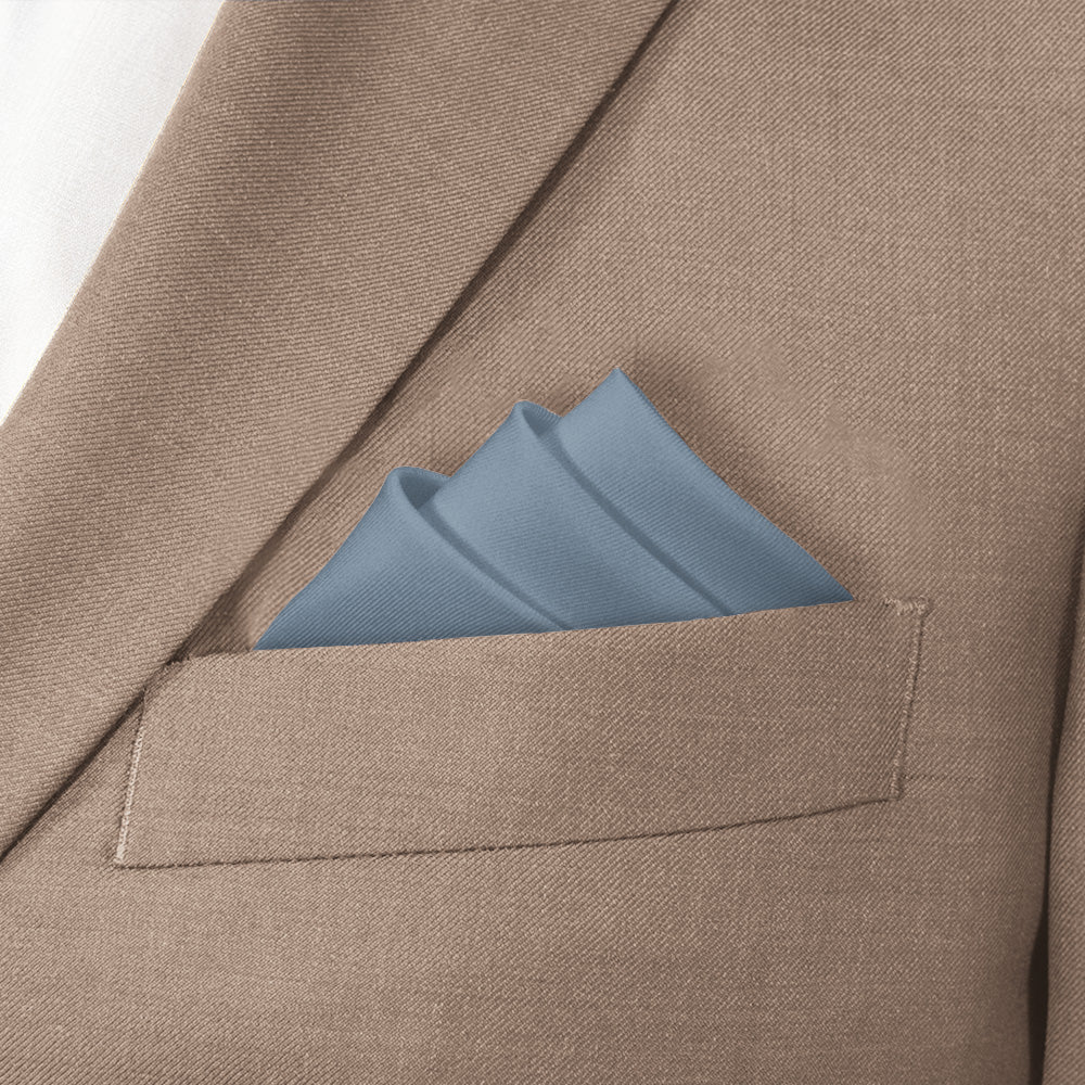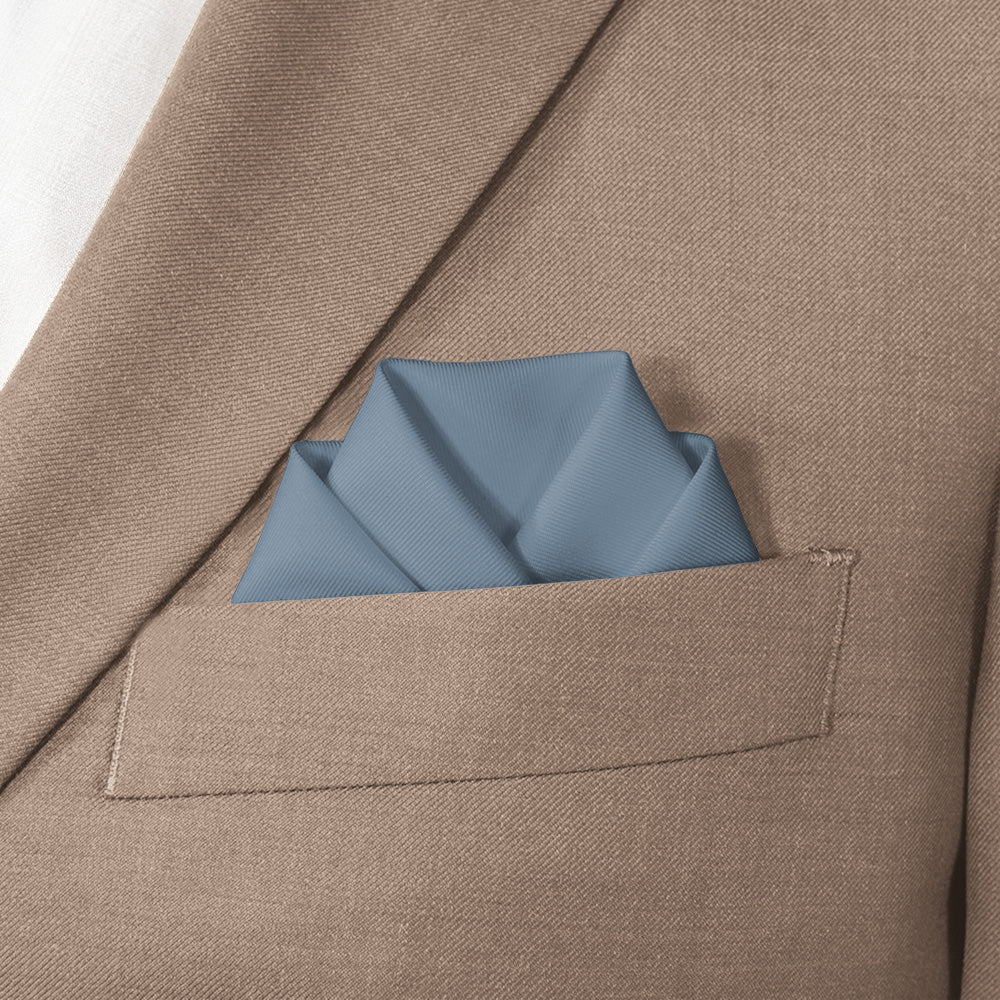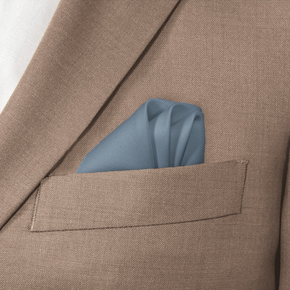 Blue-gray wedding pocket squares convey a sense of harmony and tranquility, like a calm ocean. These solid blue-gray pocket squares are matched to Azazie Dusty Blue.