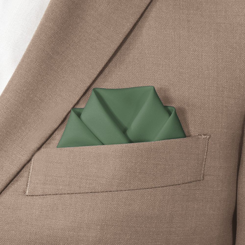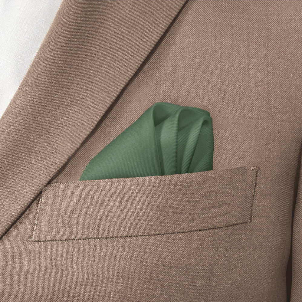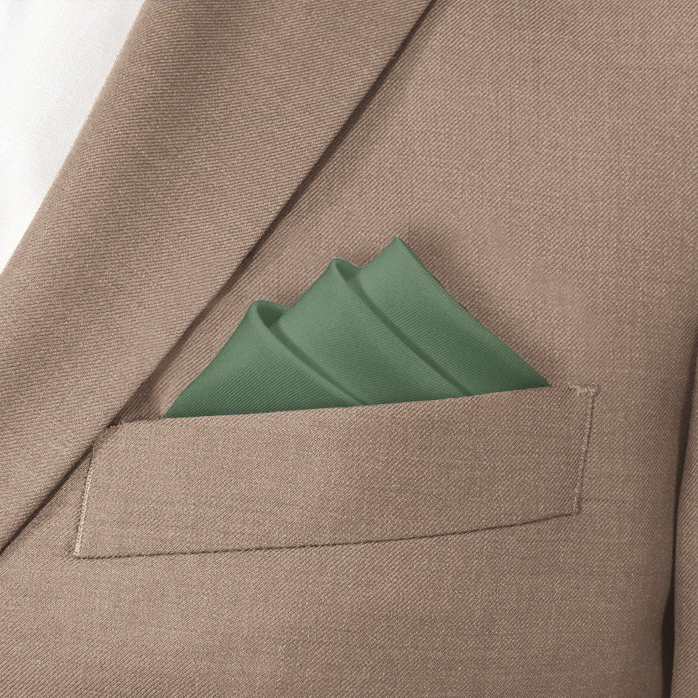 These solid green pocket squares, matched to Azazie Eucalyptus, symbolize harmonious new beginnings.