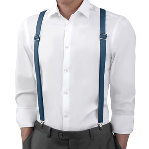 Convey a sense of depth and balance in this solid dark teal wedding suspenders matched to Azazie Ink Blue.