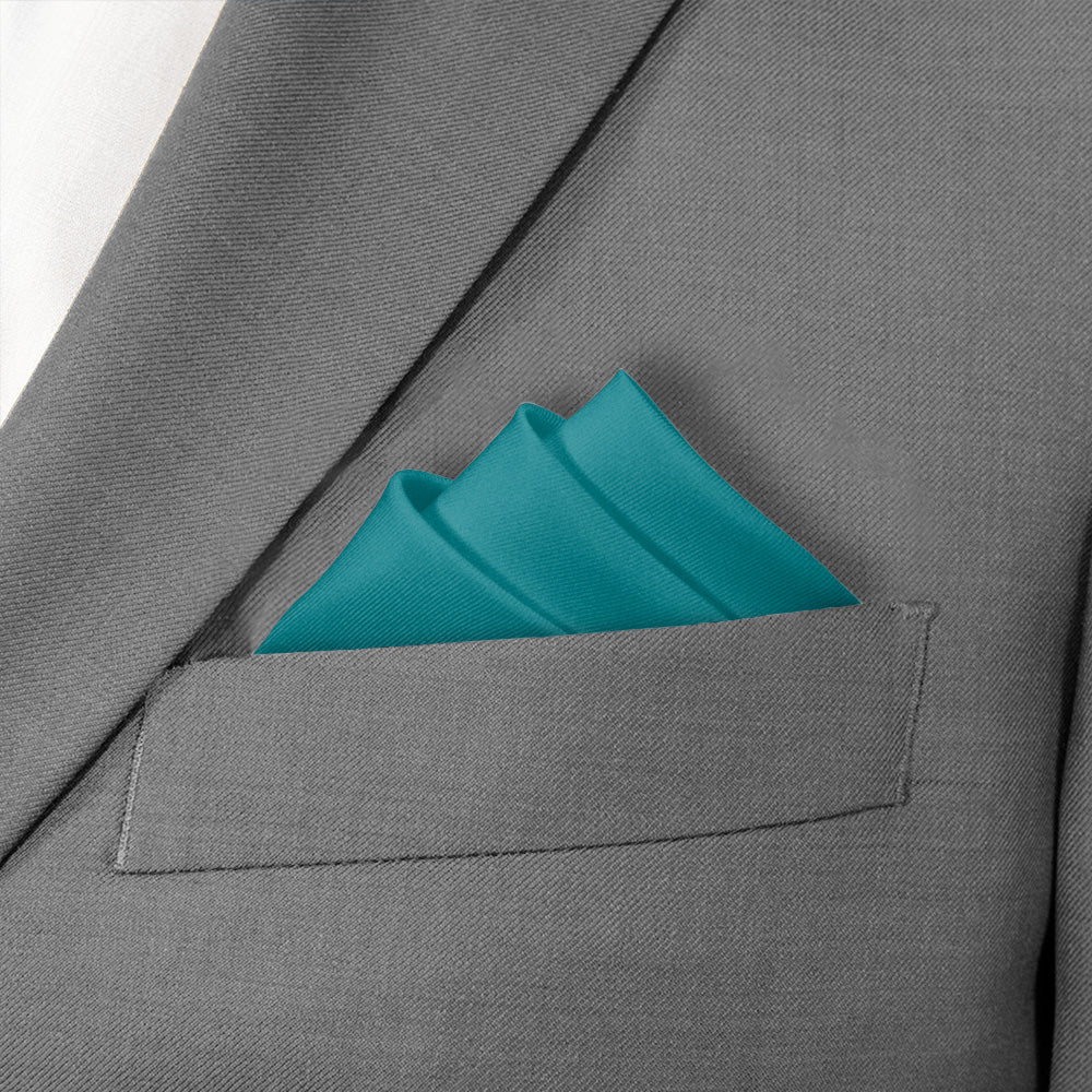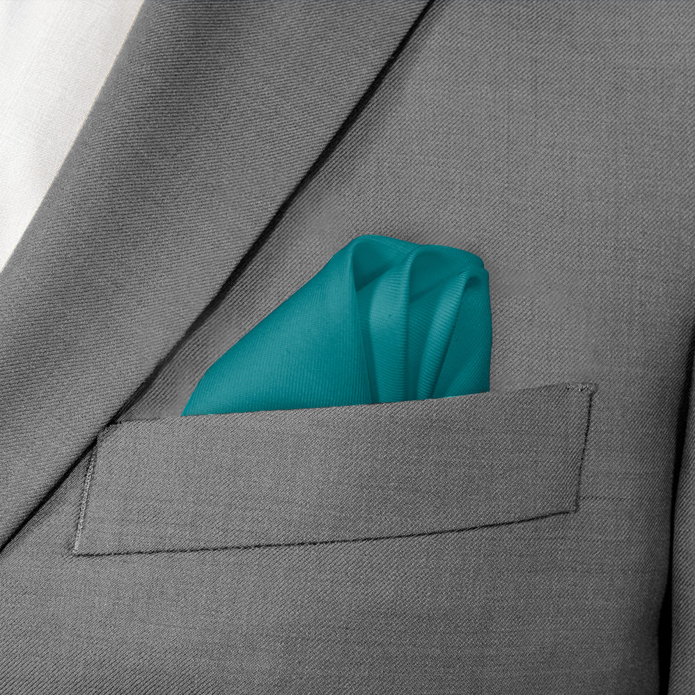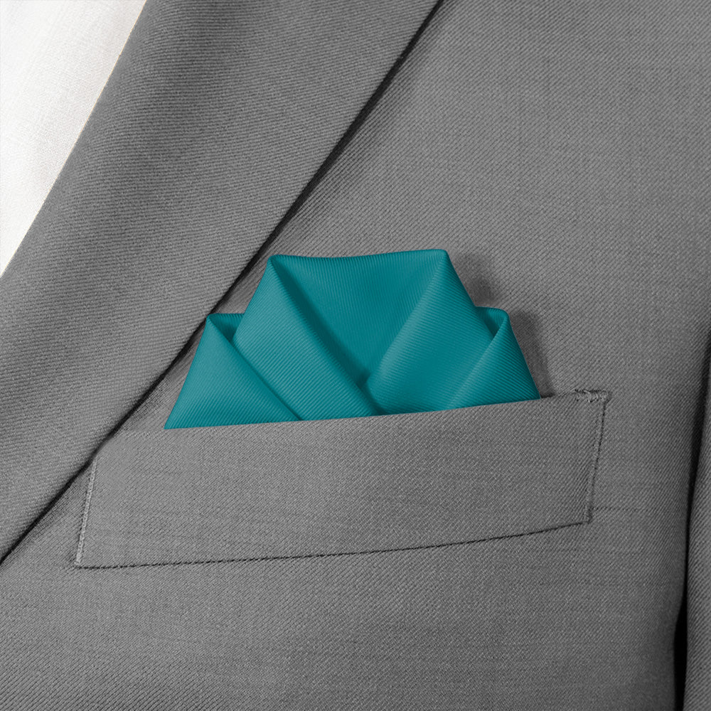 These brilliant solid teal wedding pocket squares matching Azazie Jade radiate success and good fortune.