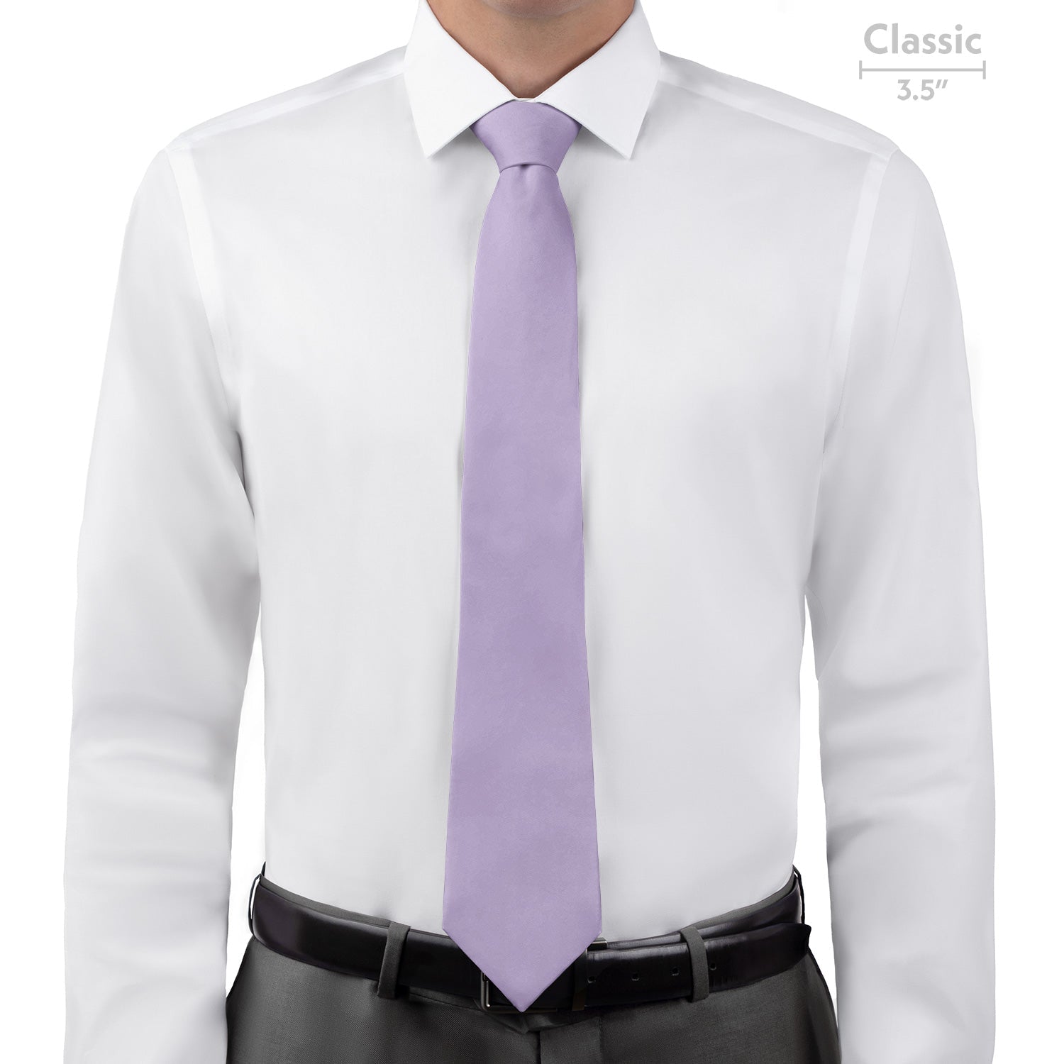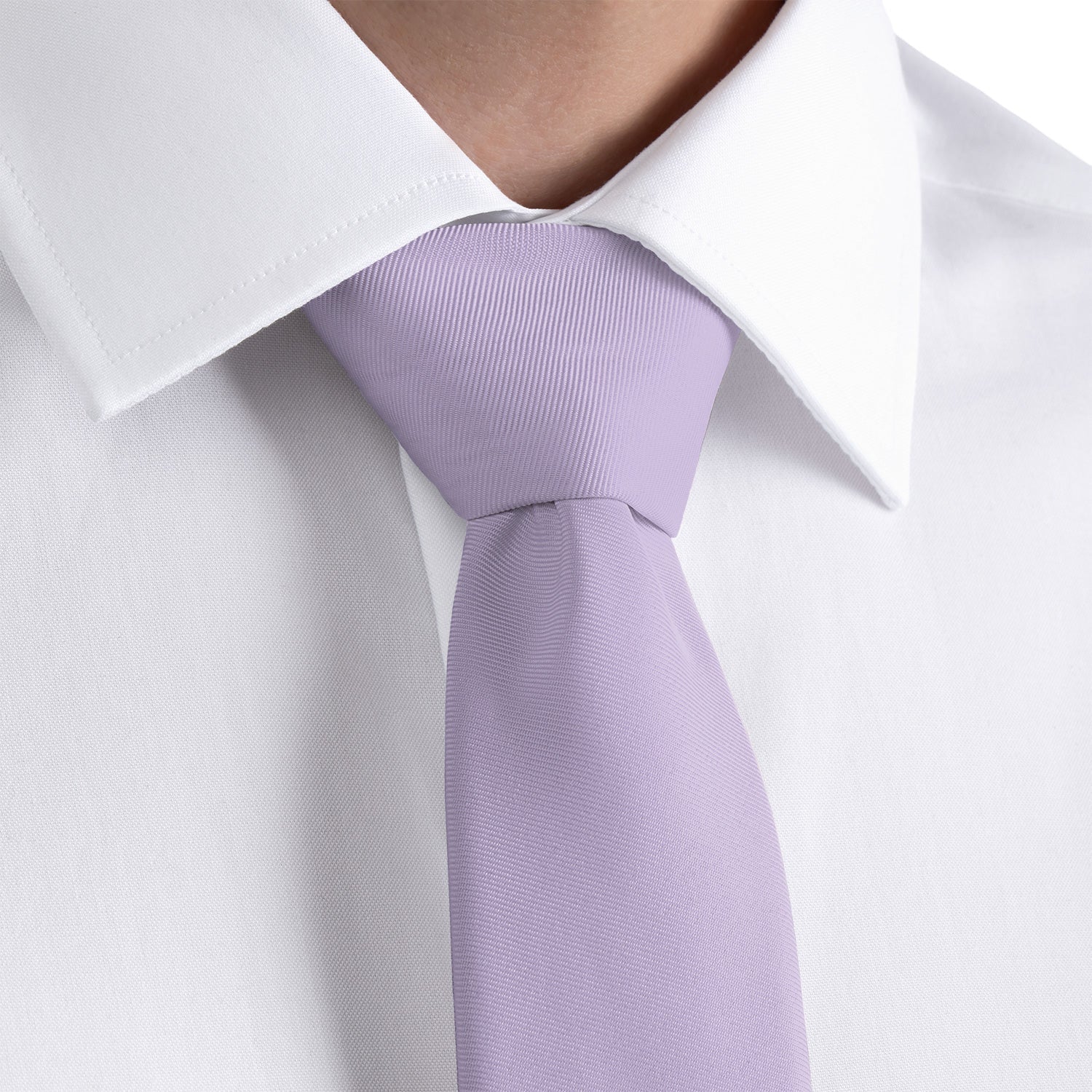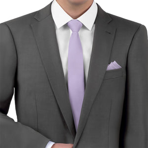 Solid pale purple neckties convey style and creativity, like these ones matched to Azazie Lilac.
