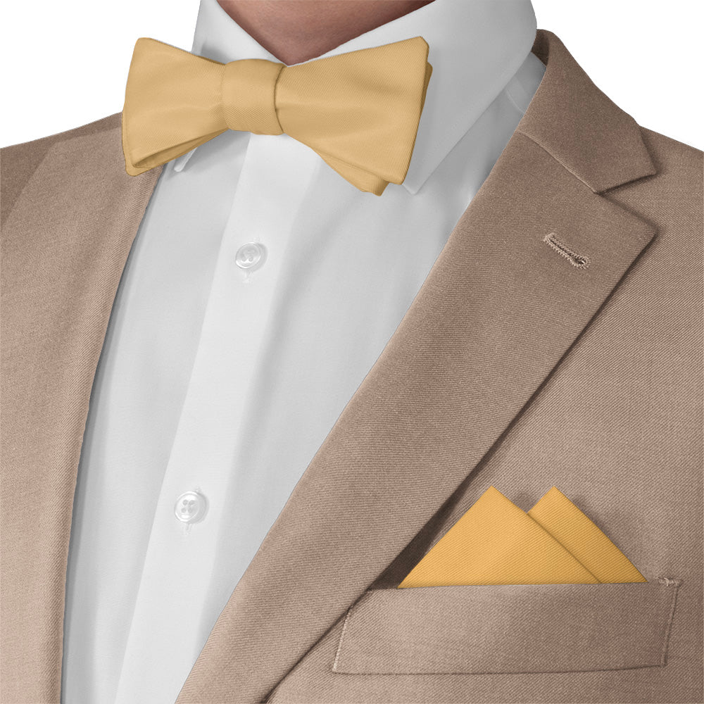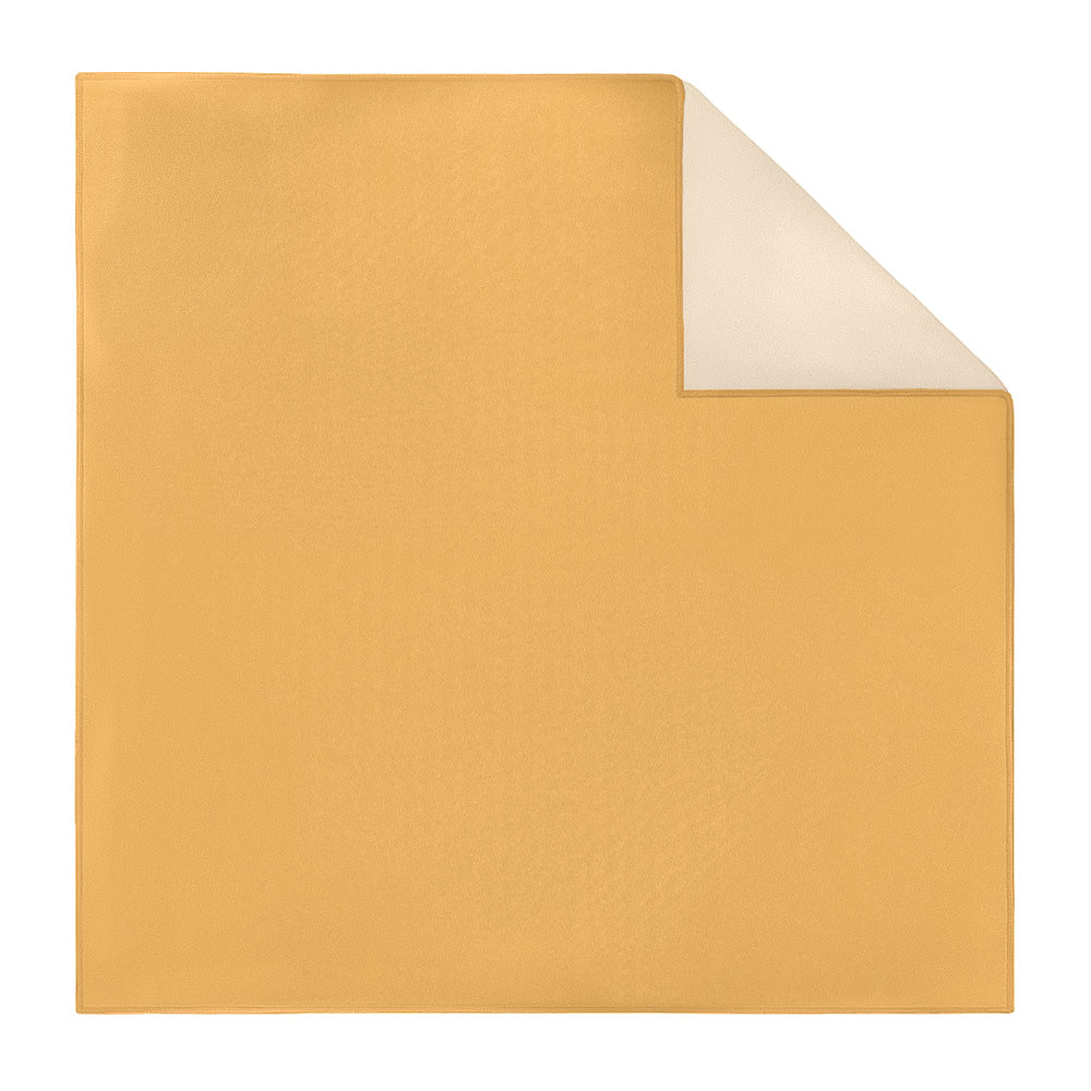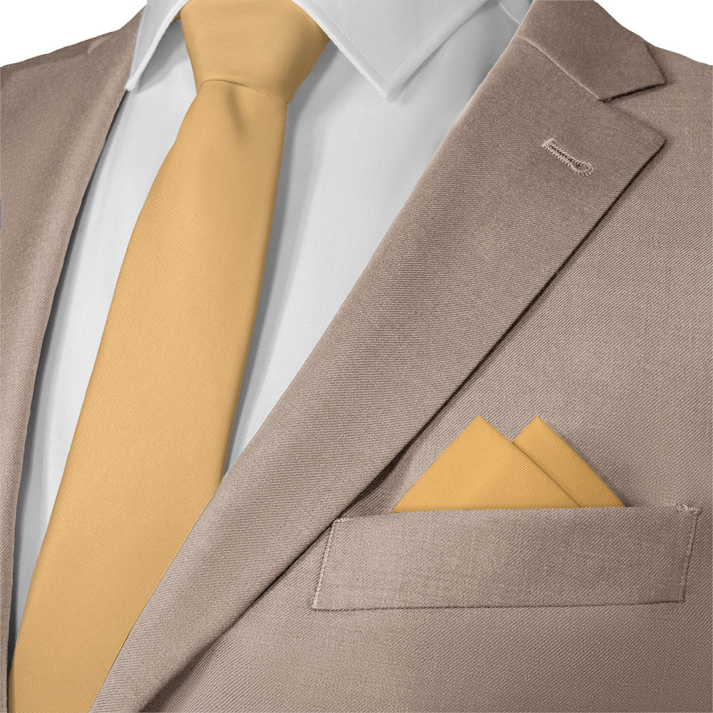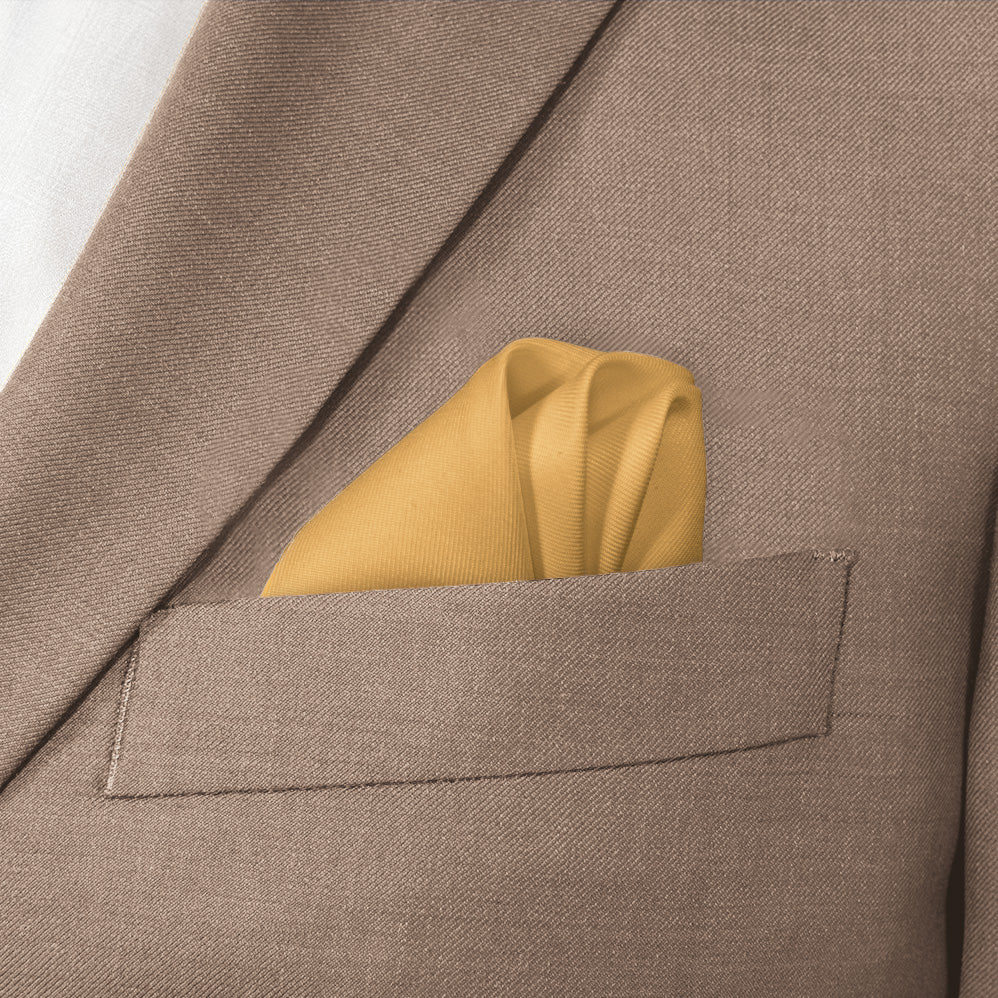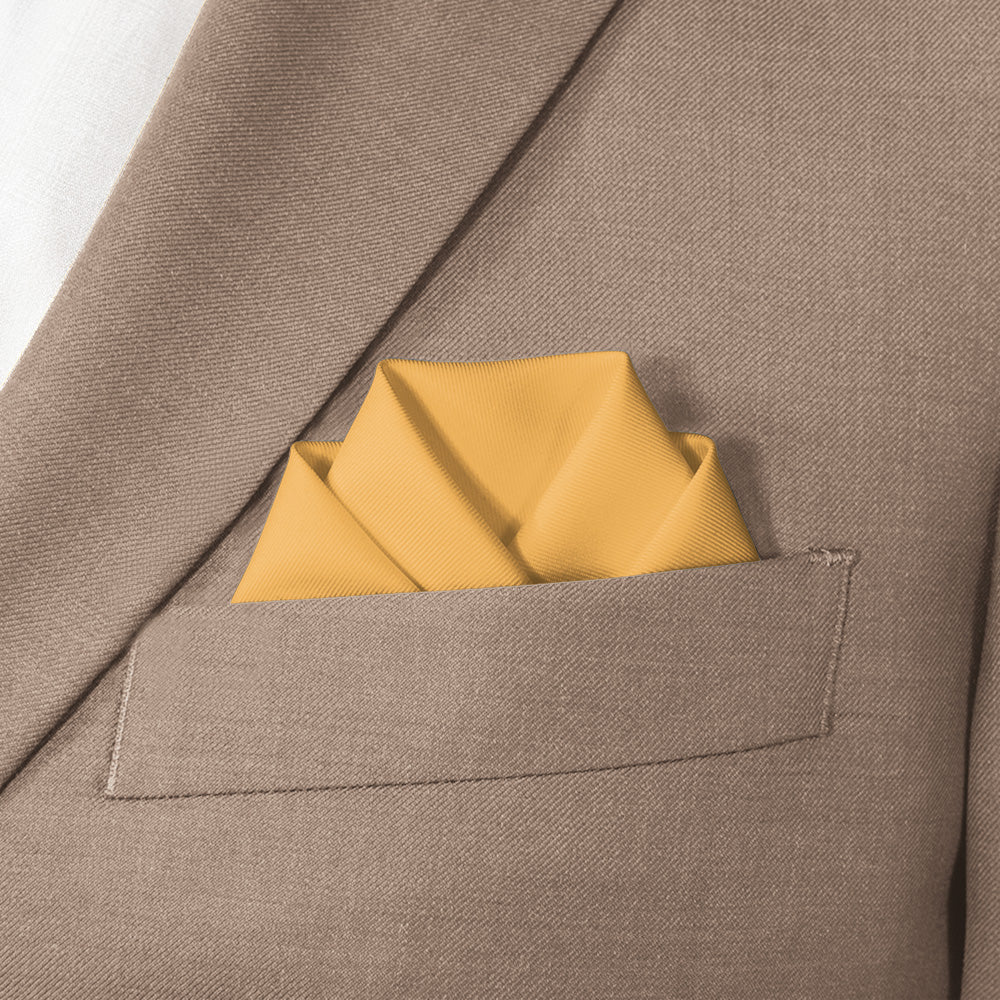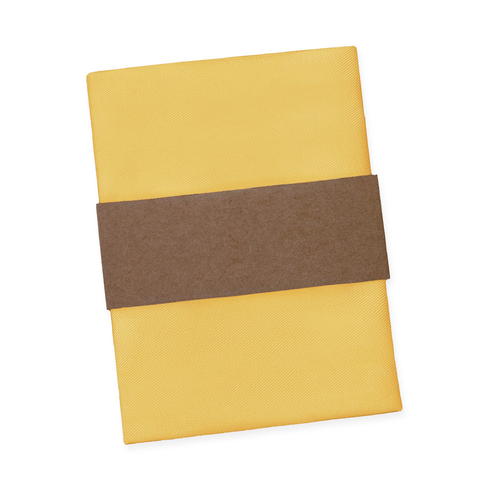 These rich solid yellow pocket squares matched to Azazie Marigold convey joy and innovation.