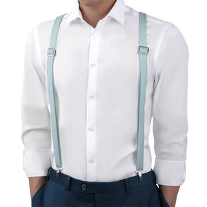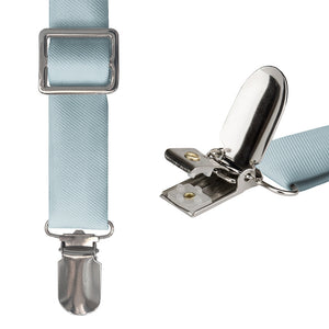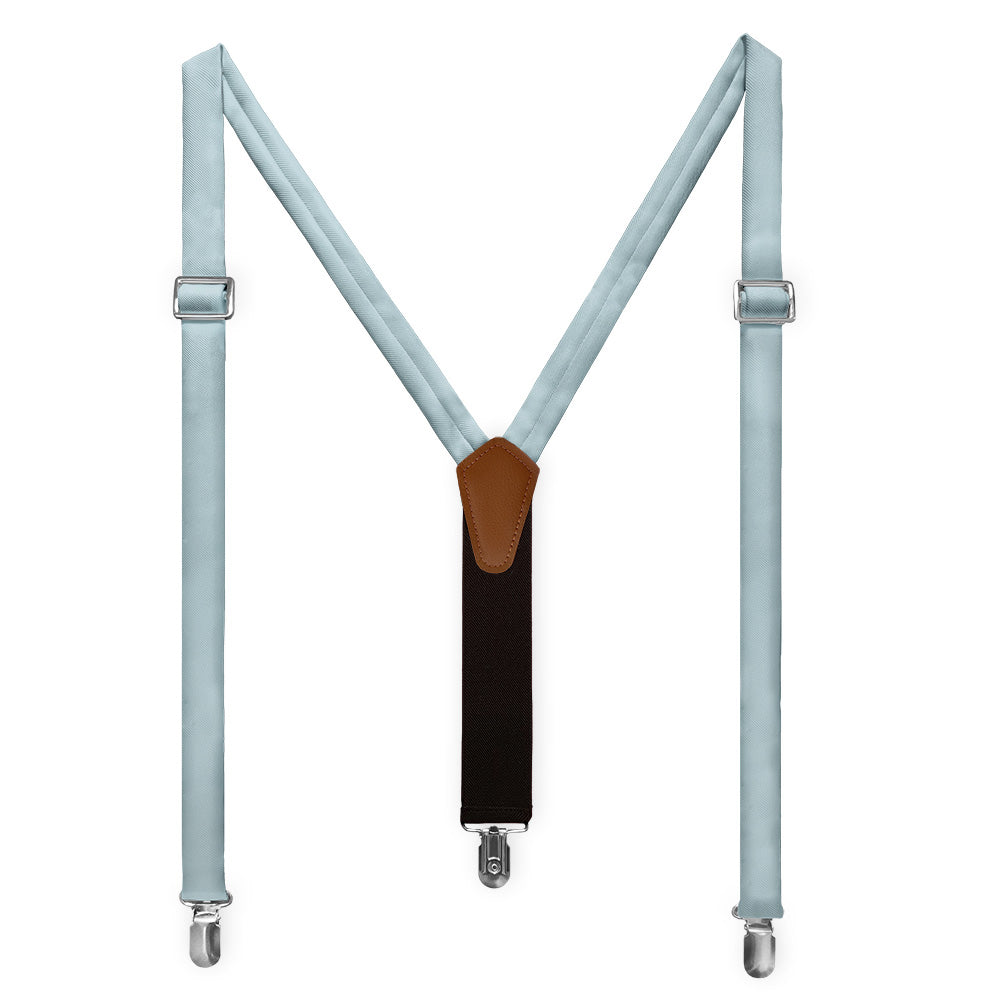 We've matched these solid pale blue suspenders to Azazie Mist, a calming shade that conveys trust and serenity.