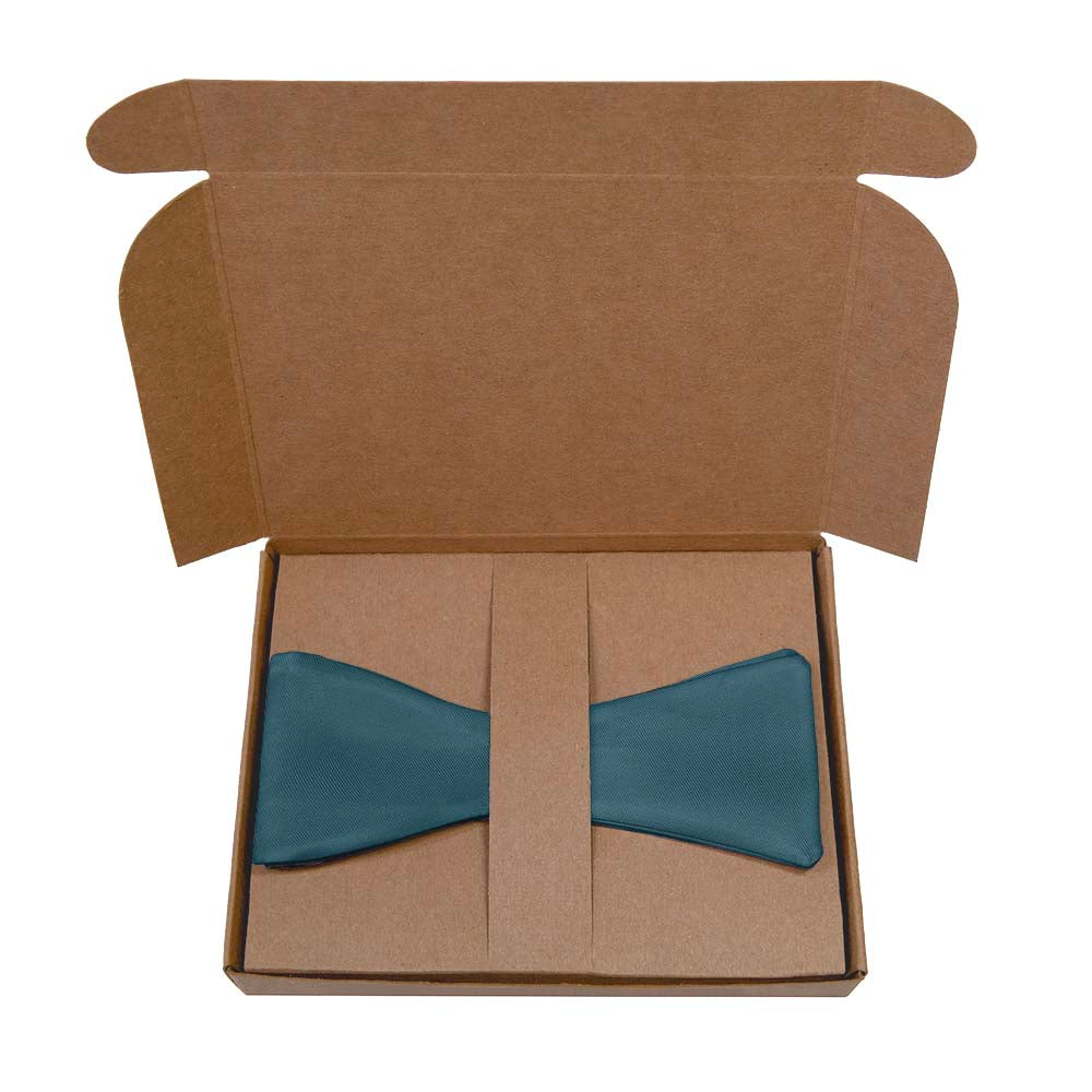 Peacocks symbolize marriage and faithfulness, much like these solid peacock blue wedding bow ties matched to Azazie Peacock.