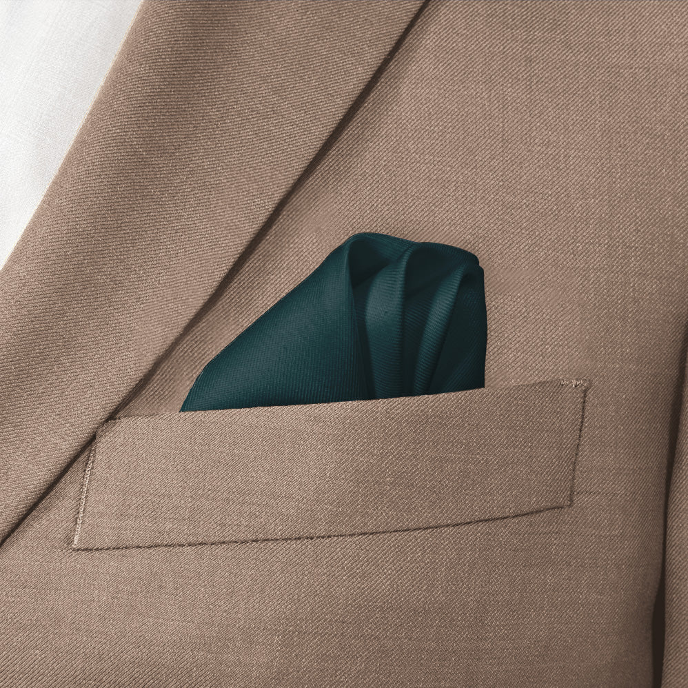 These solid forest green pocket squares matched to Azazie Pine symbolize freshness, vigor, and faith.