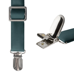 These solid forest green suspenders matched to Azazie Pine symbolize freshness, vigor, and faith.