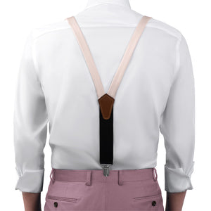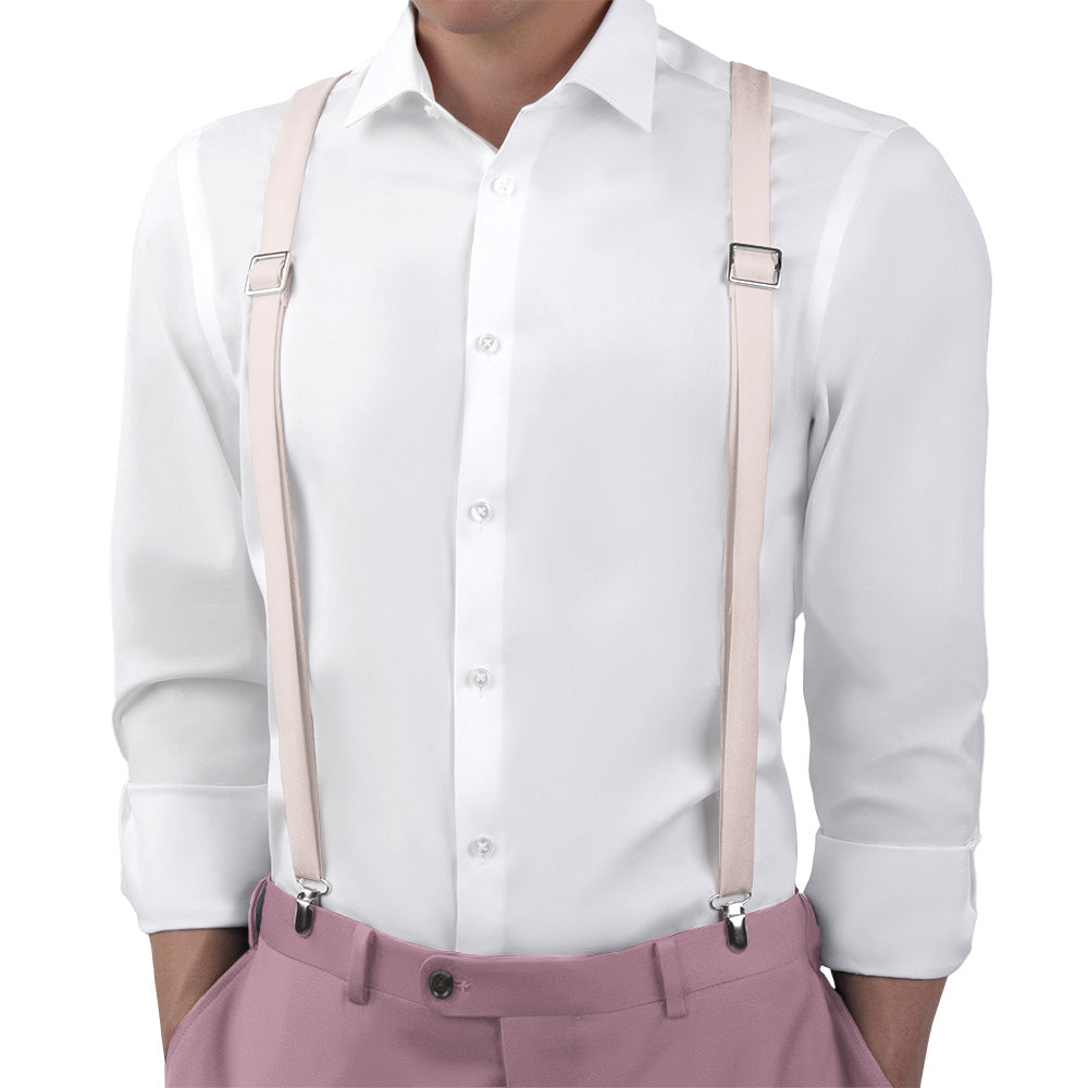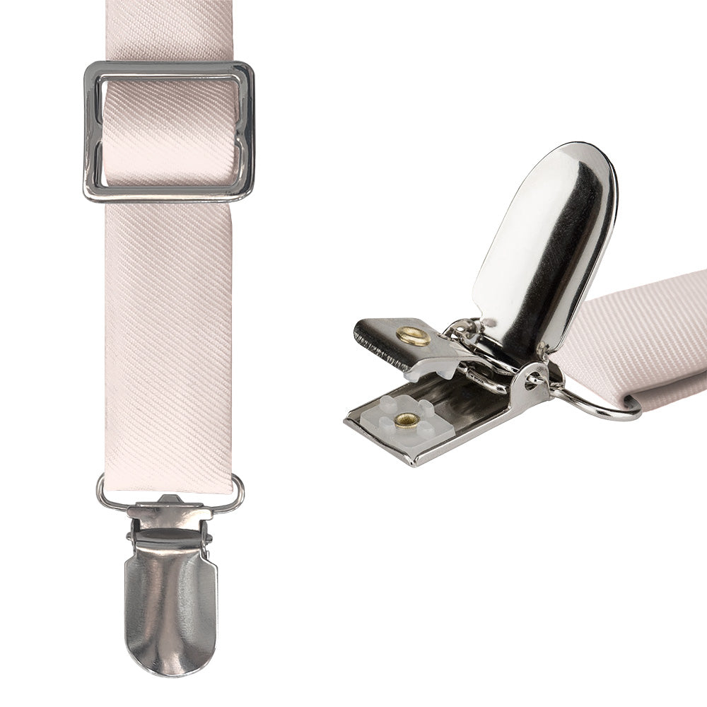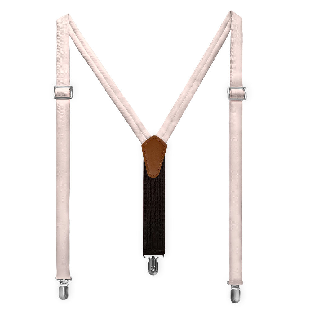 These solid pale pink wedding suspenders match Azazie Rose Petal, a gentle, romantic shade.