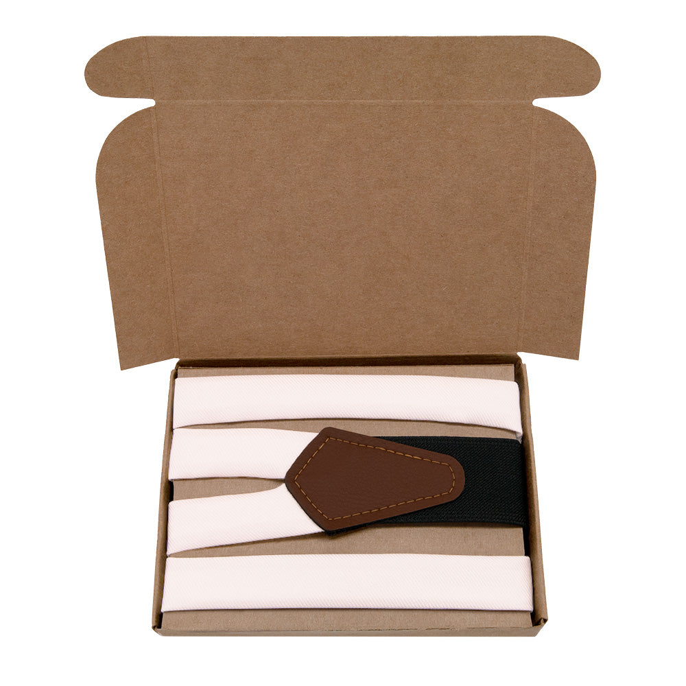 Printed fabric straps are 1-inch wide and secured to an elastic rear strap with vegan leather Y-back to allow the suspenders to move with you and extend as you bend. We use silver alligator pant clips that feature a special mechanism to ensure the suspenders clamp securely to pants.