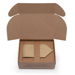 Sustainably sourced thoughtful packaging ready for gifting with 100% recycled and recyclable paper printed with vegetable inks.