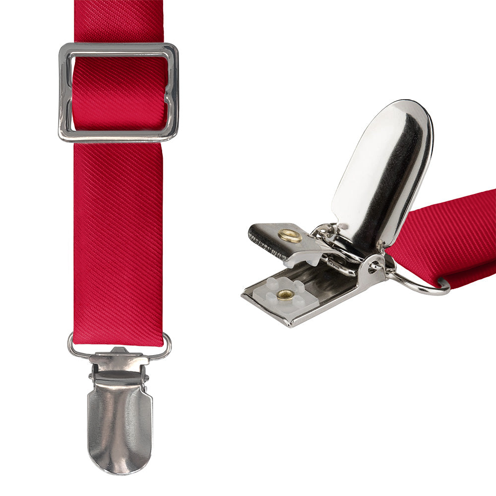 Printed fabric straps are 1-inch wide and secured to an elastic rear strap with vegan leather Y-back to allow the suspenders to move with you and extend as you bend. We use silver alligator pant clips that feature a special mechanism to ensure the suspenders clamp securely to pants.