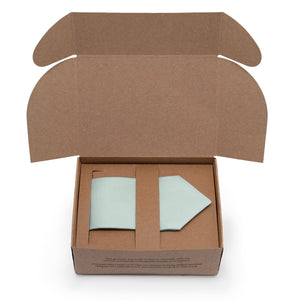 Sustainably sourced thoughtful packaging ready for gifting with 100% recycled and recyclable paper printed with vegetable inks.