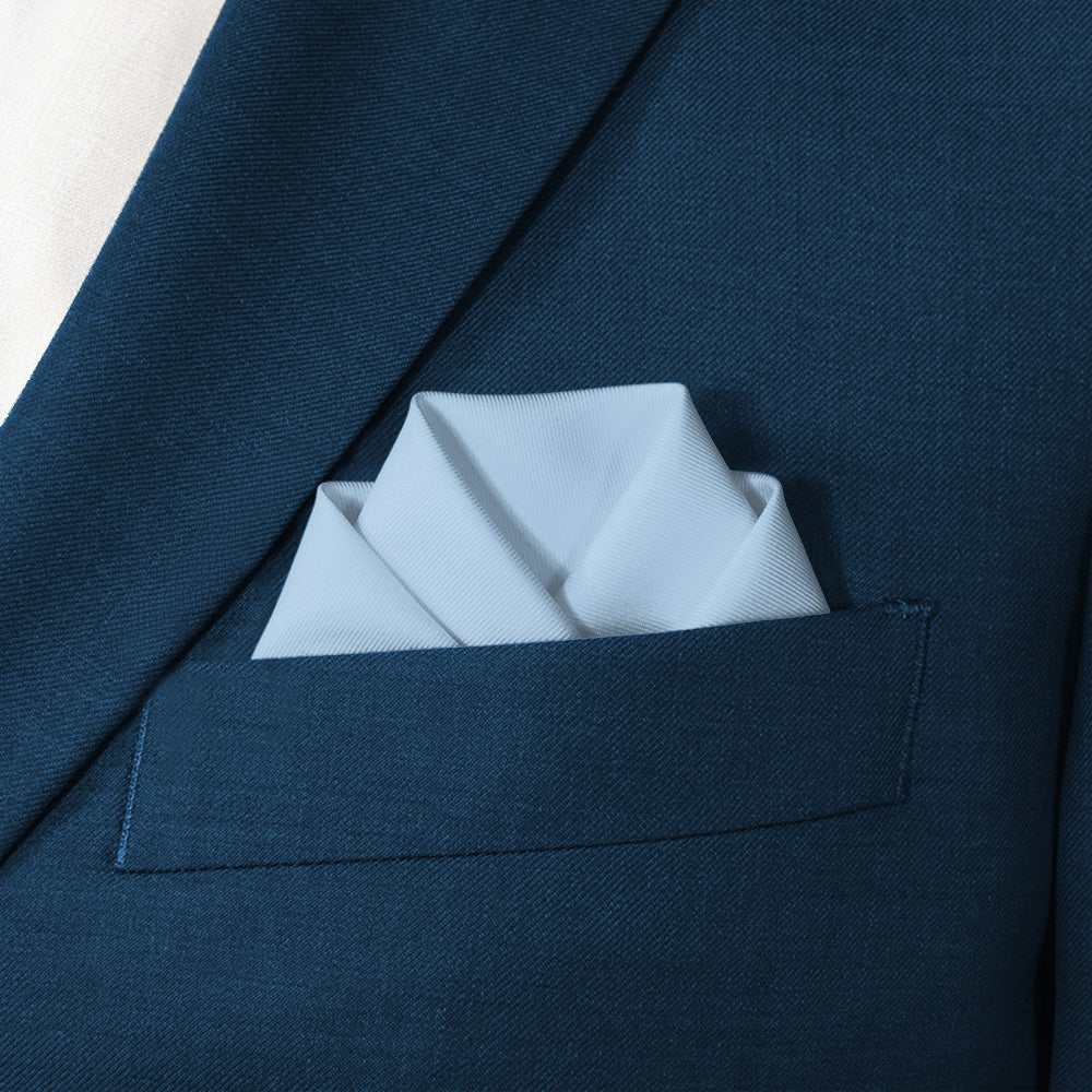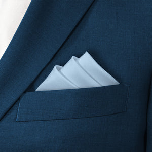 Convey freedom and serenity in this solid pale blue wedding pocket square matched to Azazie Sky Blue.