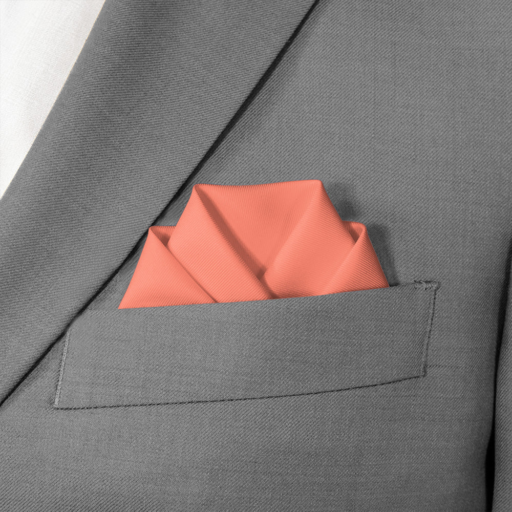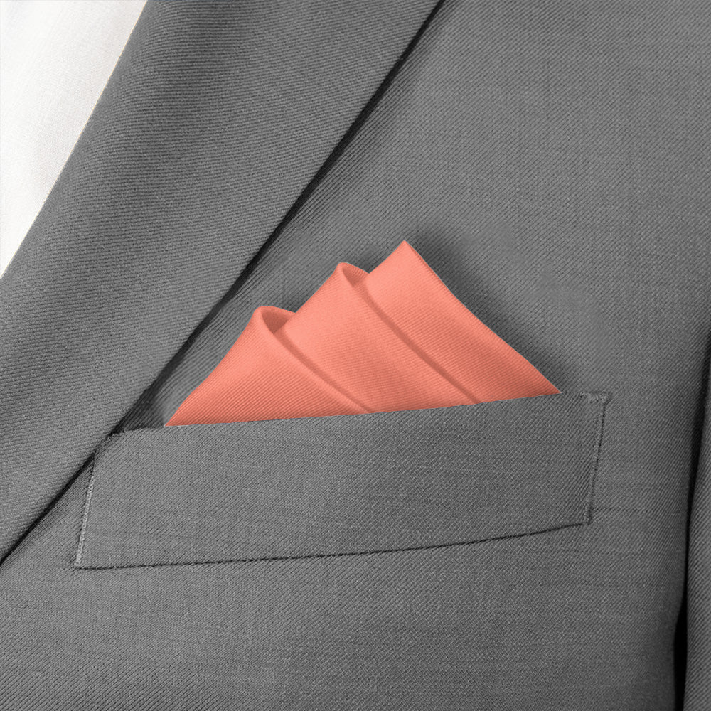 These solid melon colored pocket squares match Azazie Sunset, a charismatic and exuberant shade.