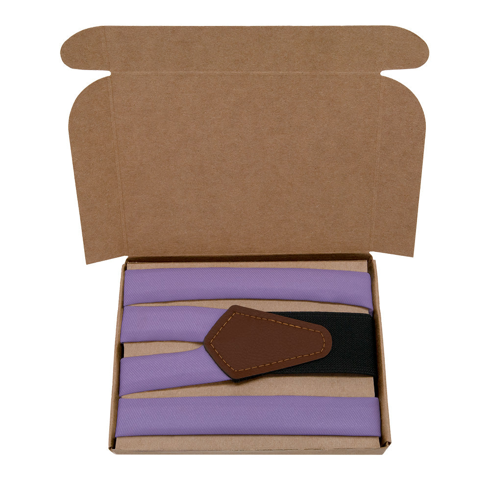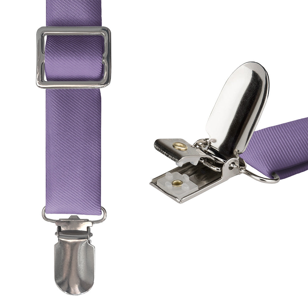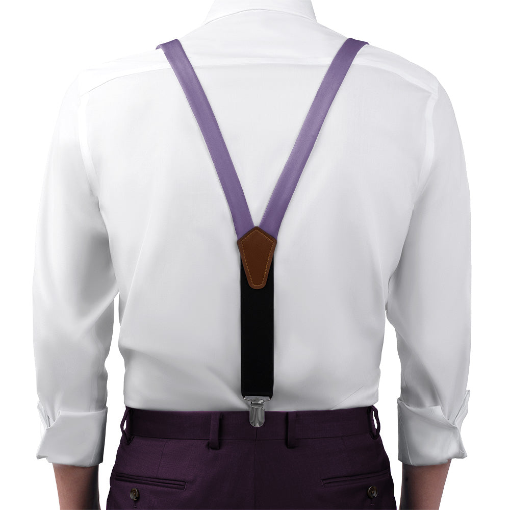 Radiate sophistication and style in these splendid solid purple wedding suspenders matched to Azazie Tahiti.