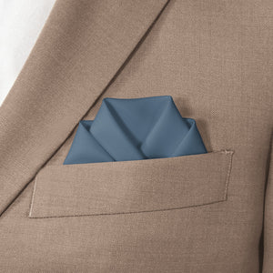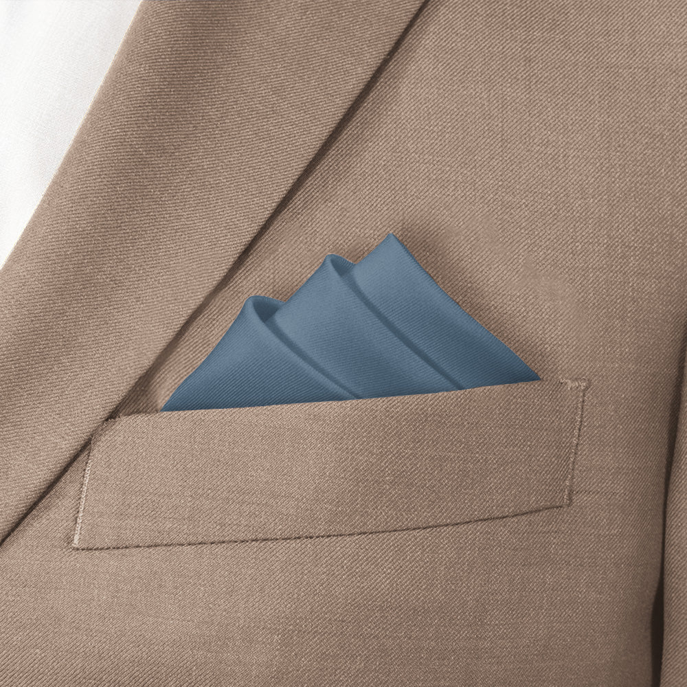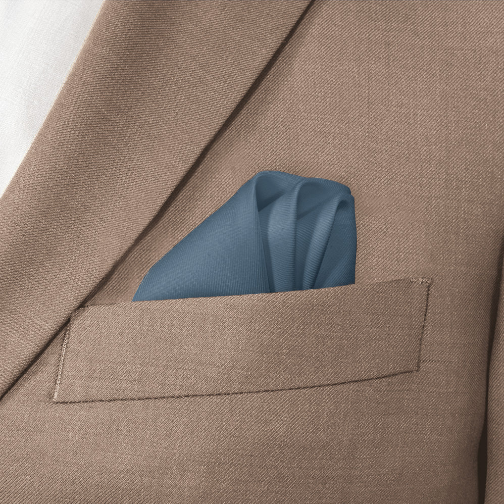 This solid blue-gray pocket square matches Azazie Twilight, a shade conveying depth, harmony, and dignity.