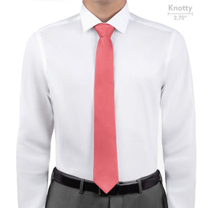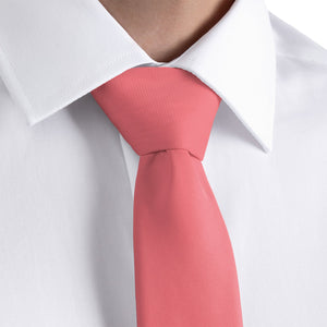 A solid pink wedding tie conveys joy and romance, like this summery shade matched to Azazie Watermelon.