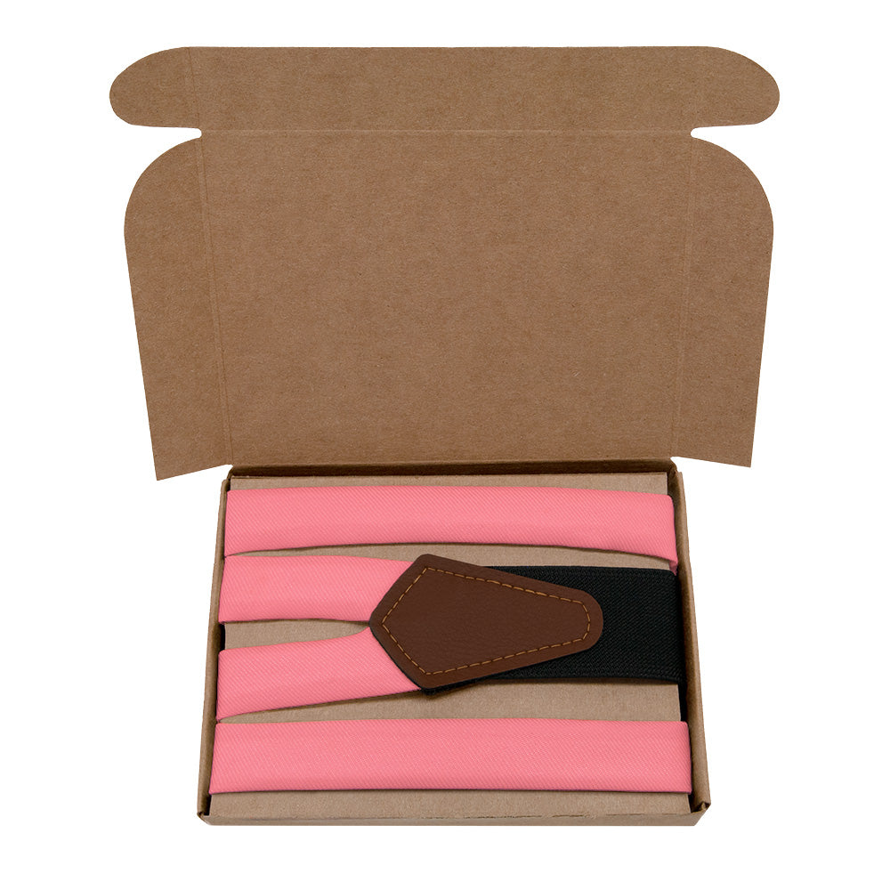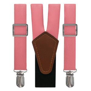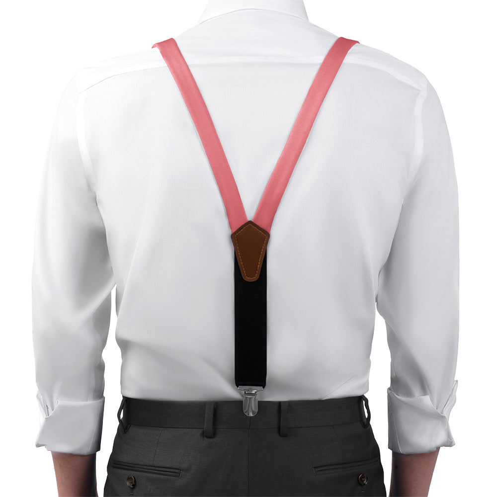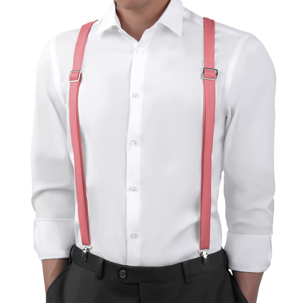 Solid pink suspenders conveys joy and romance, like this summery shade matched to Azazie Watermelon.