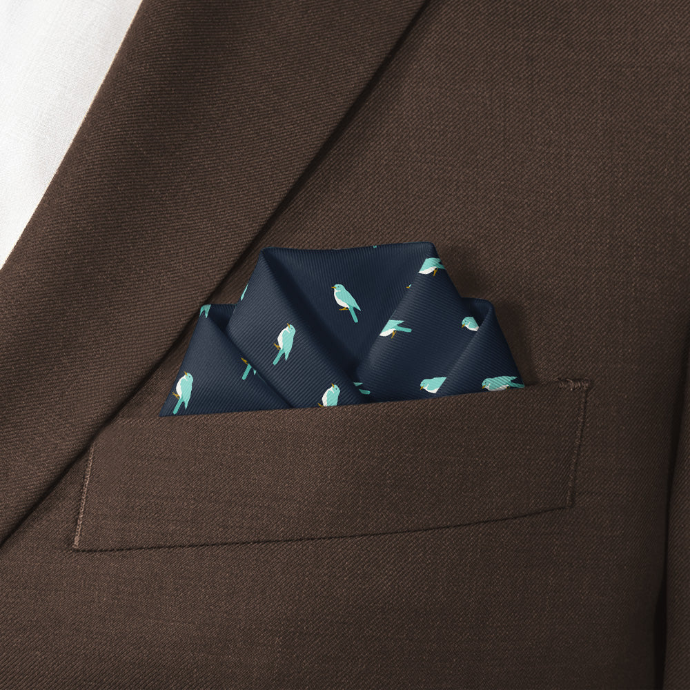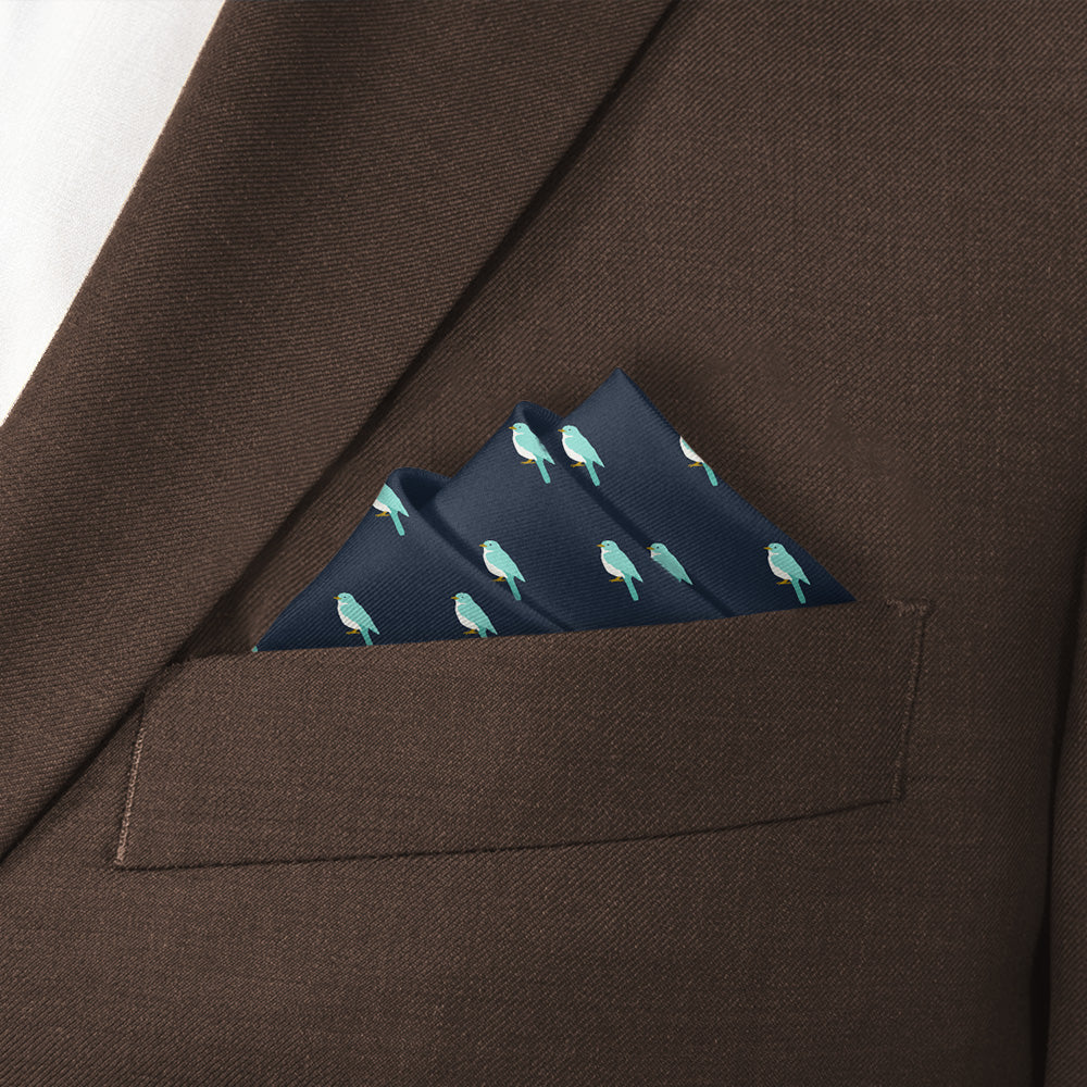 The sweet songbirds on this pocket square are perfect for spring. The lively Baby Bird pocket square is fun for casual wear, but the small repeating bird pattern works equally well for formal events.
